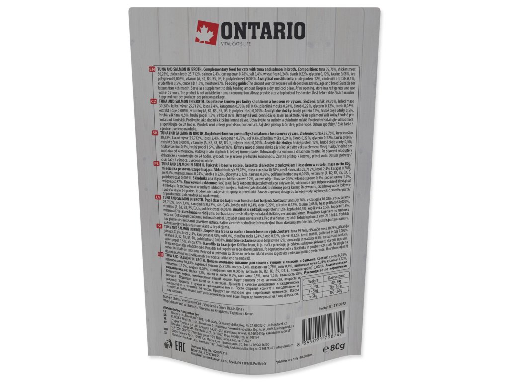 Kapsička Ontario tuňák a losos ve vývaru 80g