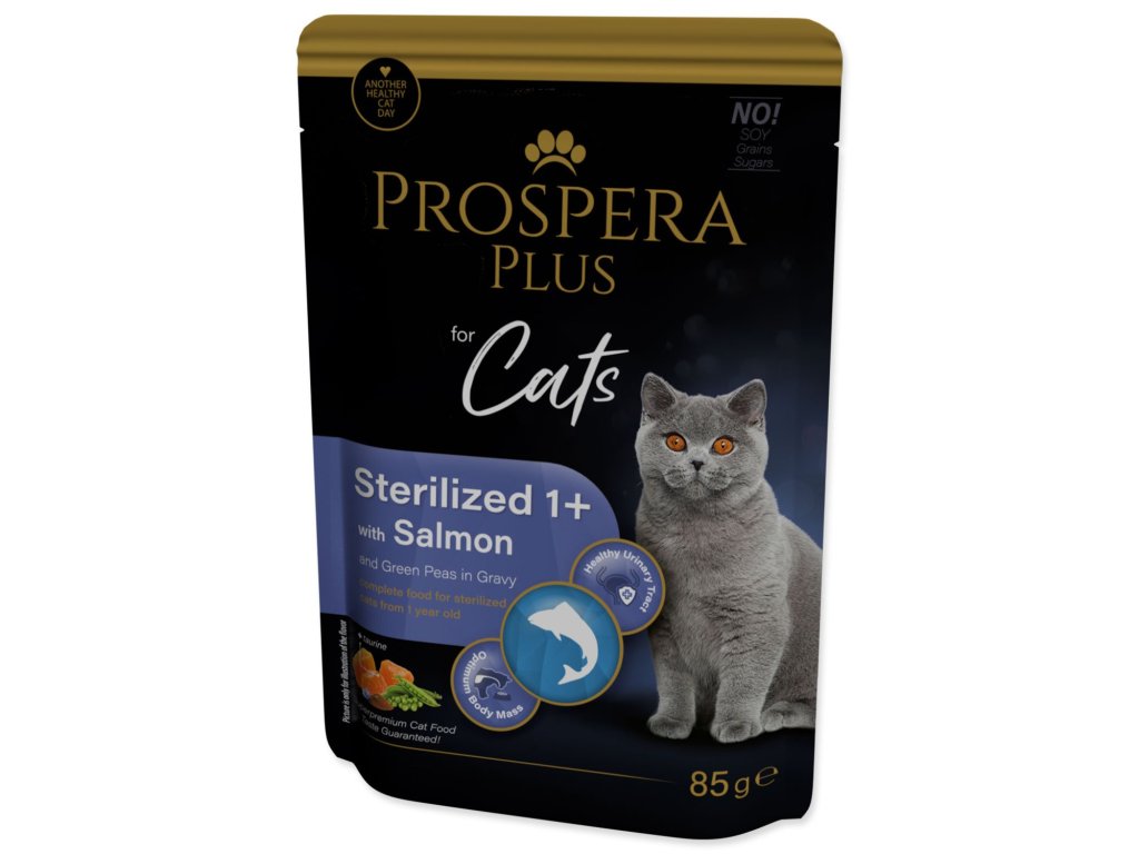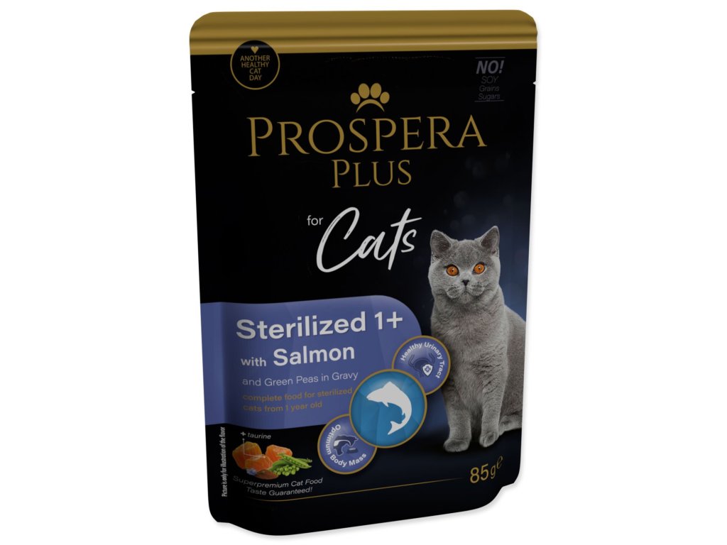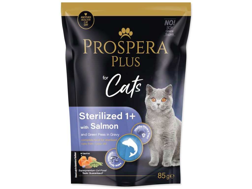 Kapsička Prospera Plus Sterilized 1+, Salmon, Peas 85g