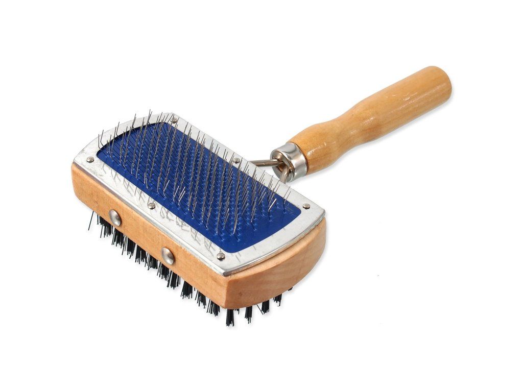 Dřevěný oboustranný kartáč pro malé a střední psy.