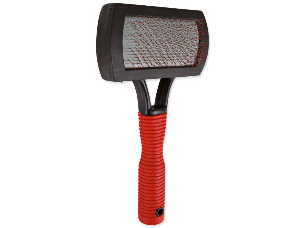 Jednostranný kartáč z umělé hmoty s gumovou rukojetí pro psy. Vhodný pro psy s dlouhou, krátkou, kudrnatou a hrubou srstí.