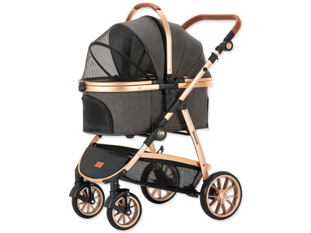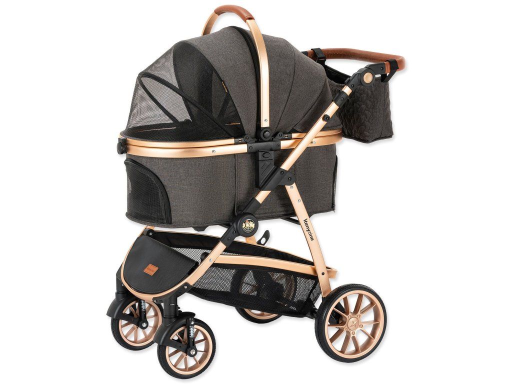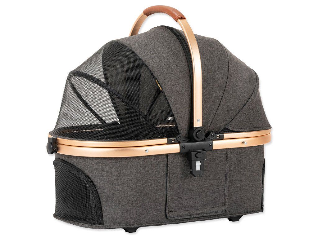 - Univerzální využití: Kočárek se skládá ze dvou částí: rámu a nosiče. Při společném použití se jedná o multifunkční a stylový kočárek pro psy. Pokud je nosič používán samostatně, lze jej použít jako mobilní přepravku a přepravku do auta. Přepravka pro domácí mazlíčky je vybavena bočním postrojem a bezpečnostní přezkou, která zajišťuje bezpečnost vašeho mazlíčka při používání v autě.