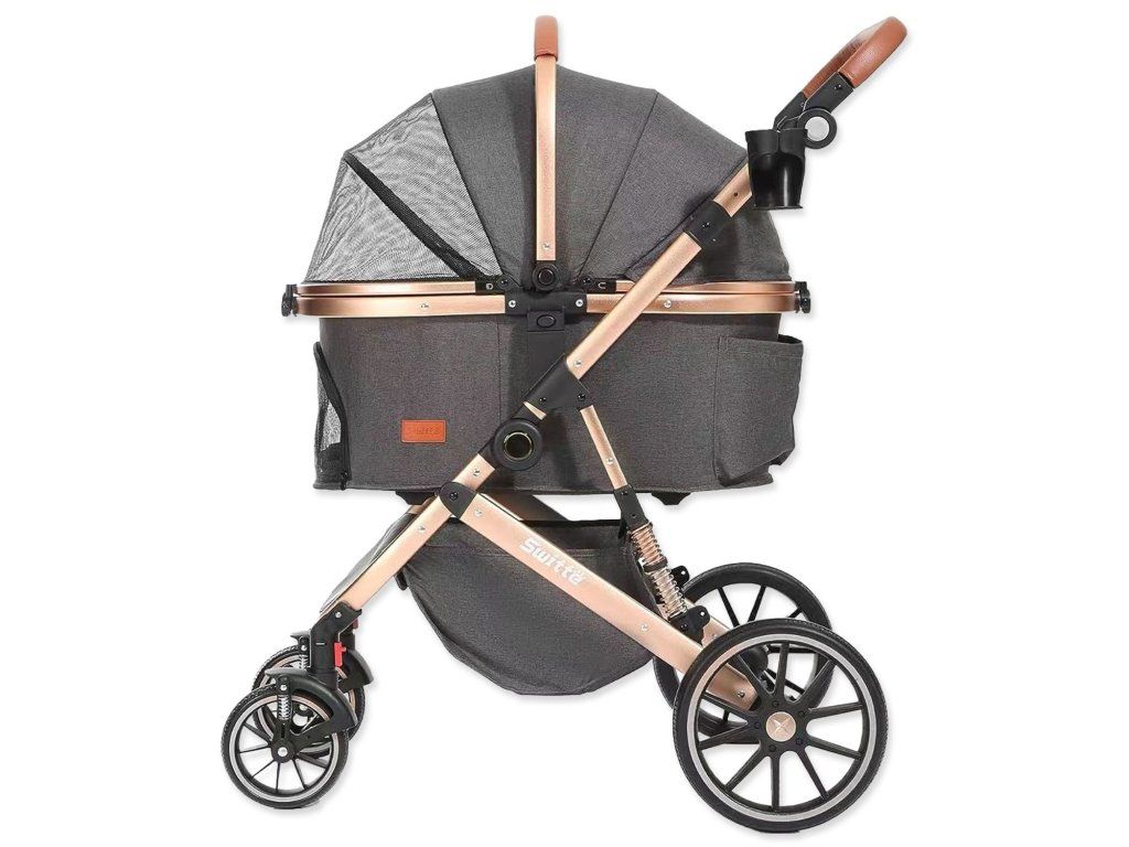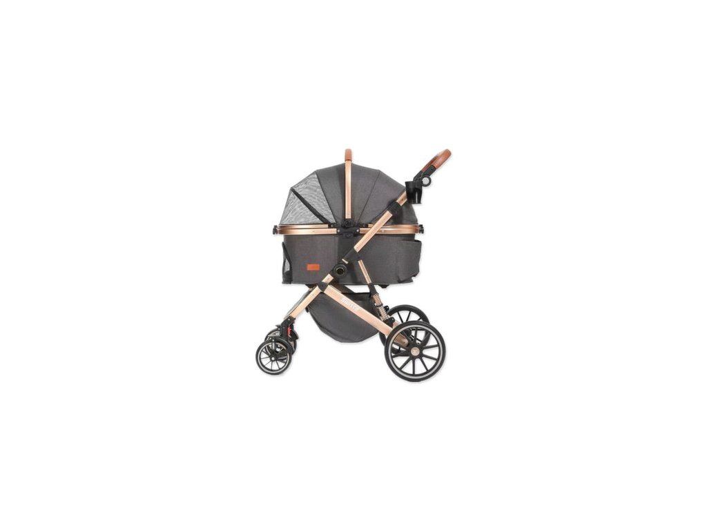 - Univerzální využití: Kočárek se skládá ze dvou částí: rámu a nosiče. Při společném použití se jedná o multifunkční a stylový kočárek pro psy. Pokud je nosič používán samostatně, lze jej použít jako mobilní přepravku a přepravku pro auta. Přepravka pro domácí mazlíčky je vybavena bočním postrojem a bezpečnostní přezkou, která zajišťuje bezpečnost vašeho mazlíčka při používání v autě.