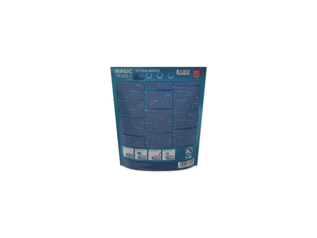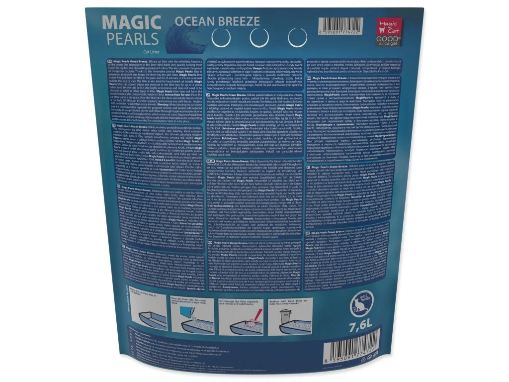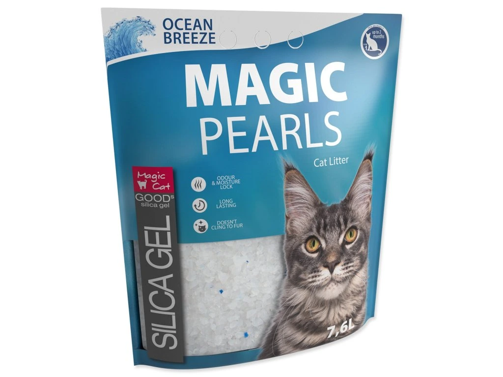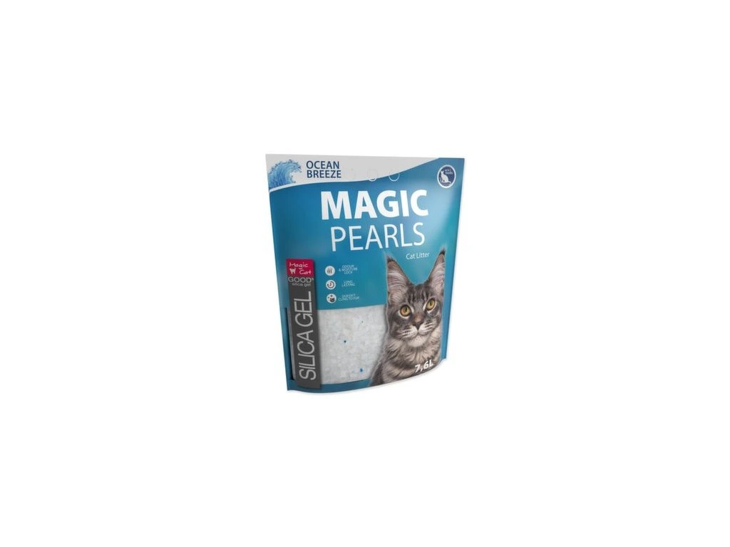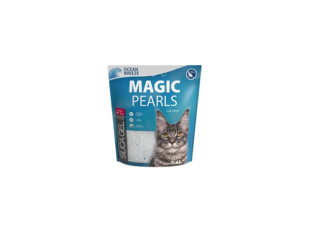 Silikátové stelivo pro kočky se svěží vůní oceánu. Díky mikropórům na sebe stelivo velice rychle váže tekutiny, které uzamkne uvnitř krystalků a eliminuje nepříjemný zápach. Tím zároveň zabraňuje množení nebezpečných bakterií. Díky tomuto inovativnímu procesu má stelivo Magic Pearls extrémní savost a udržuje toaletu suchou a čistou. Stelivo Magic Pearls je bezprašné a neulpívá na tlapkách a srsti zvířat, takže není kočkami vynášeno mimo toaletu. Stelivo je velice vhodné i pro dlouhosrstá plemena koček. Stelivo Magic Pearls v toaletě vydrží absorbovat pachy a vlhkost až 4 týdny (při použití jednou kočkou), proto je jeho použití také velice ekonomické, není třeba jej měnit tak často jako jiné druhy steliv.