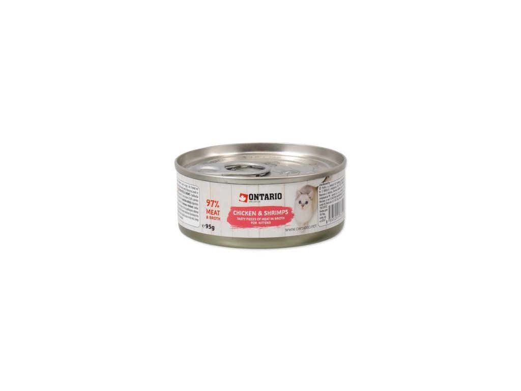 Konzerva Ontario Kitten kuřecí kousky s krevetami 95g