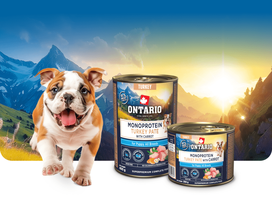 Konzerva Ontario Puppy monoprotein krůtí pate s mrkví