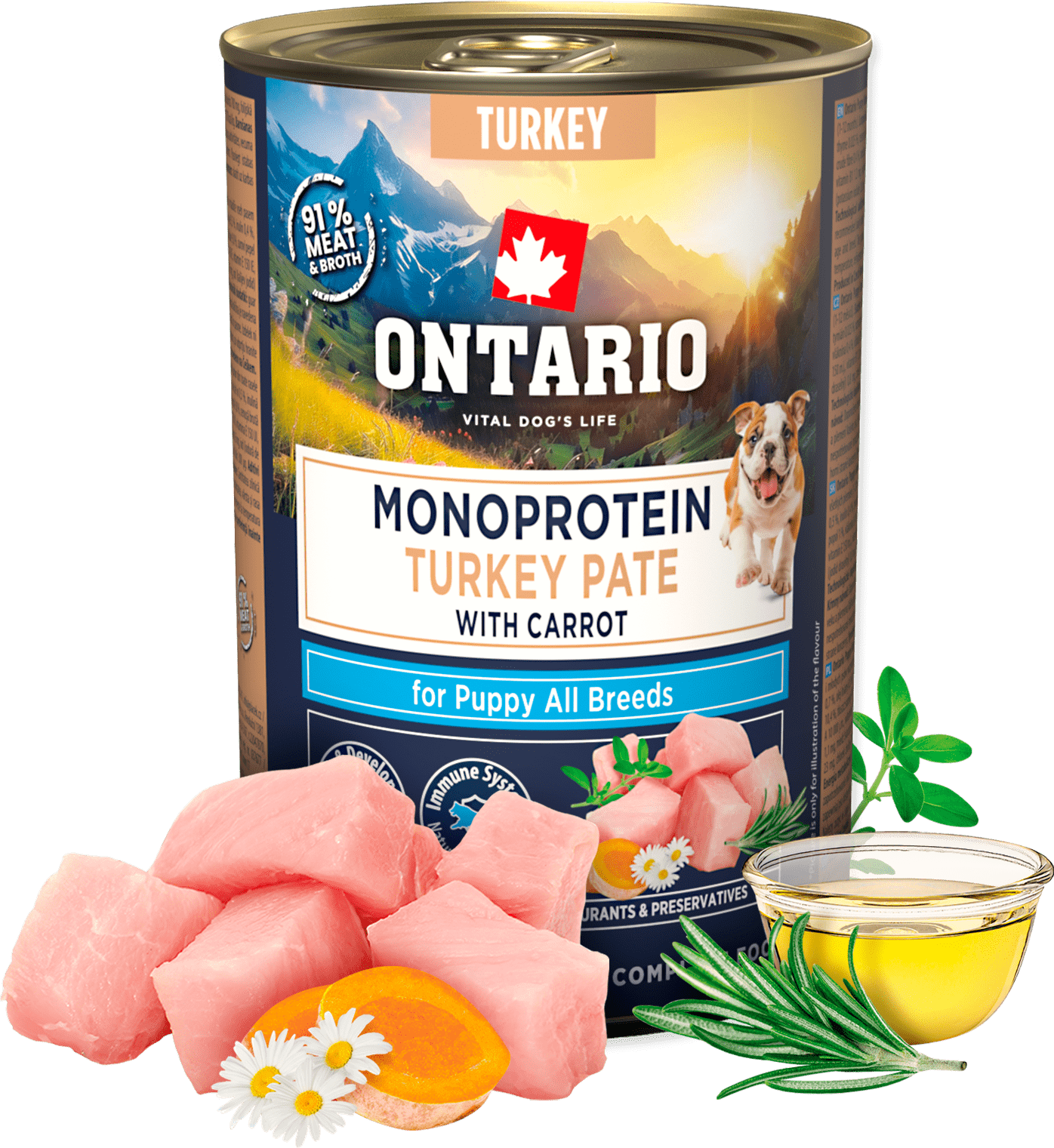 Konzerva Ontario Puppy monoprotein krůtí pate s mrkví