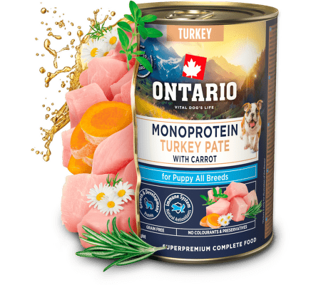 Konzerva Ontario Puppy monoprotein krůtí pate s mrkví 400g