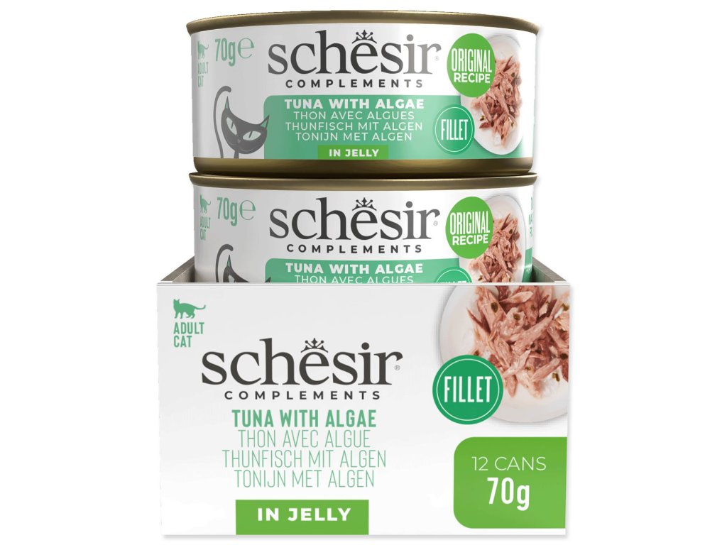 Dopřejte své kočce Schesir Complements v želé, vynikající krmivo speciálně vyvinuté pro dospělé kočky.