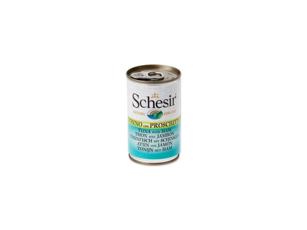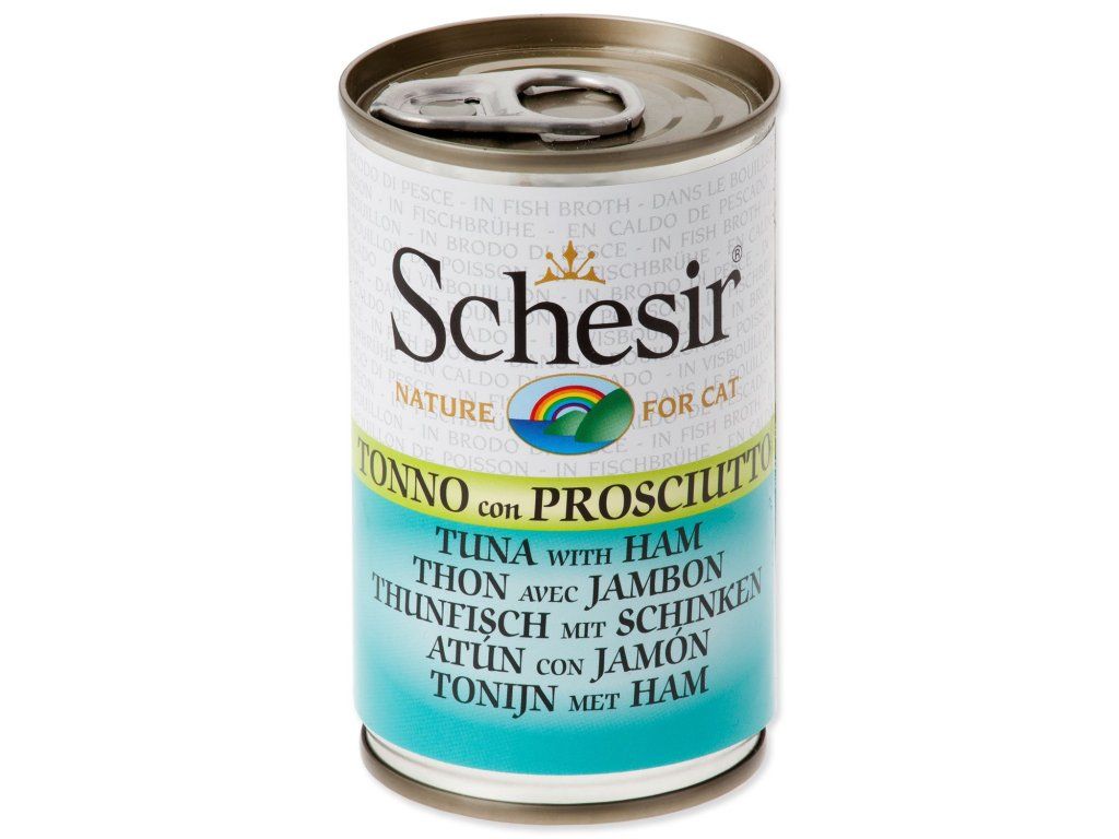 Konzerva s masem z tuňáka se šunkou v želé. Doplňkové krmivo pro dospělé kočky.