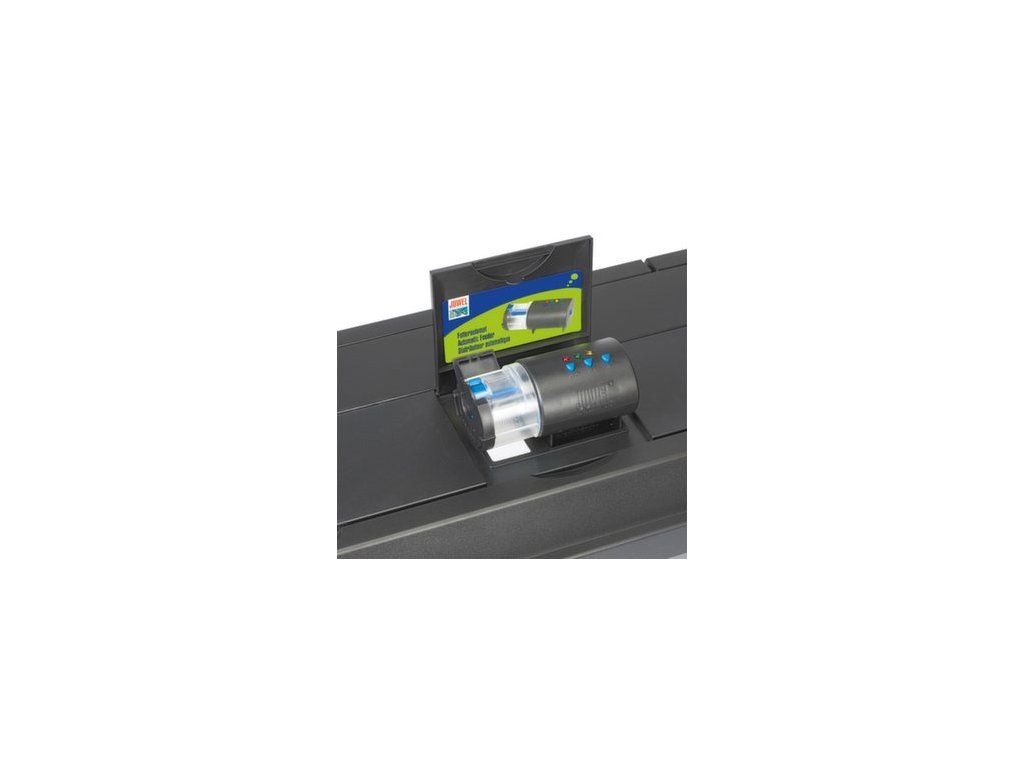 K umístění krmítka je třeba pouze vyříznout otvor do krycí klapky akvária, do kterého je pak možno nasadit nosnou misku pro krmítko. Nosná miska je konstruována tak, že obsahuje malou vyjímatelnou klapku, která uzavírá krycí otvor, pokud není krmítko v provozu.