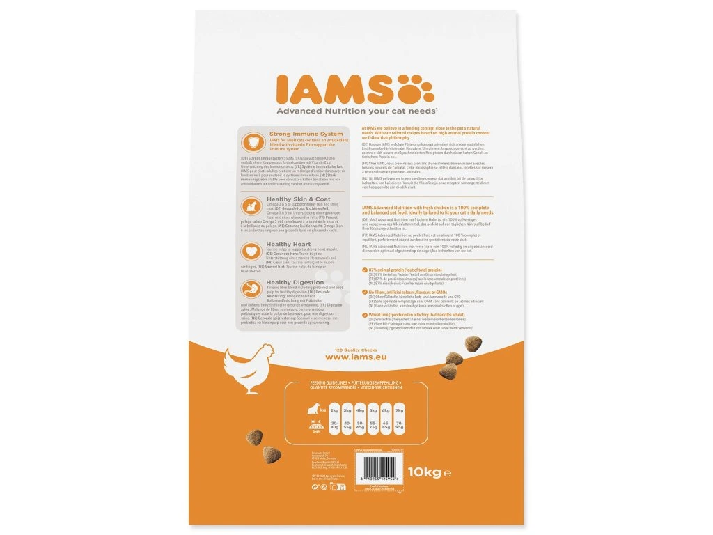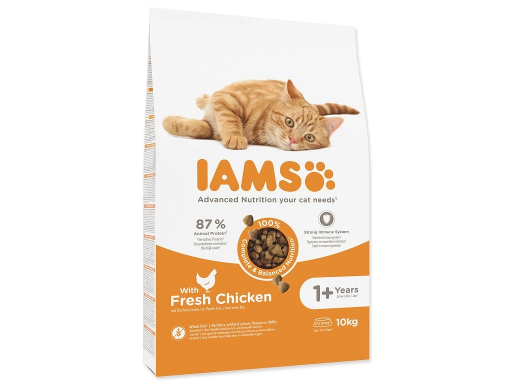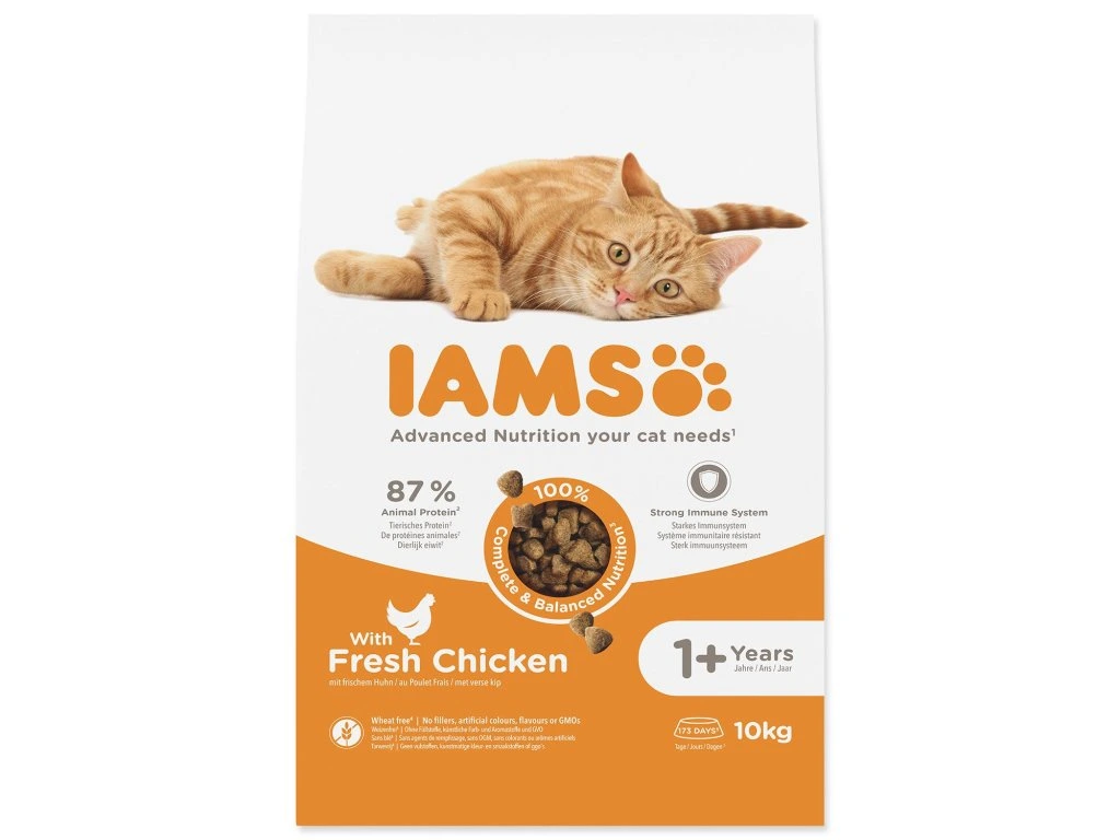Krmivo IAMS for Vitality pro dospělé kočky je 100% kompletní a vyvážené, odborníky sestavené krmivo, které bude vašemu zvířeti chutnat a svědčit. Naše nová a vylepšená receptura pro dospělé kočky s čerstvým kuřecím masem je založena na kvalitních živočišných bílkovinách pečlivě vybraných tak, aby podporovaly sedm znaků zdravé vitality kočky. Aby byly kočky zdravé, aktivní a plné energie, obsahují naše lahodné receptury až 87 % živočišných bílkovin (z celkového obsahu bílkovin).