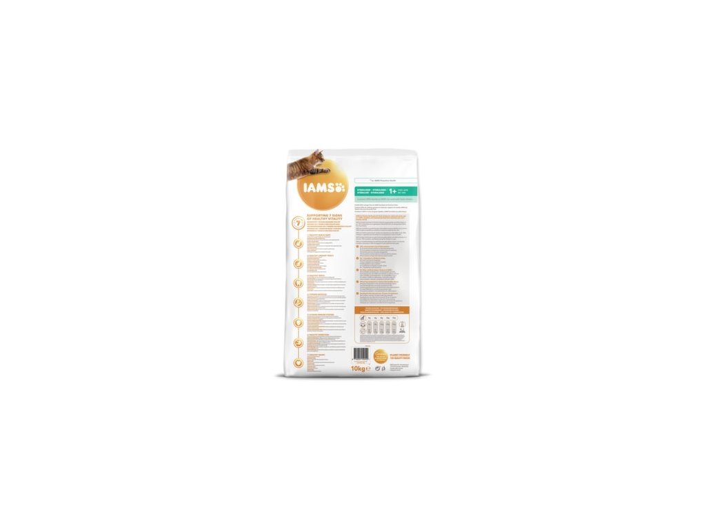 Krmivo IAMS for Vitality pro kastrované dospělé kočky a kočičí seniory je 100% kompletní a vyvážené odborníky sestavené krmivo, které bude vašemu zvířeti chutnat a svědčit. Naše nová a vylepšená receptura s čerstvým kuřecím masem je založena na kvalitních živočišných bílkovinách, které byly pečlivě vybrány, aby podporovaly sedm znaků zdravé vitality kočky. Aby byly kočky zdravé, aktivní a plné energie, obsahují naše lahodné receptury až 84 % živočišných bílkovin (z celkového obsahu bílkovin). Naše receptura pro kastrované kočky skvěle pomáhá regulovat hmotnost.