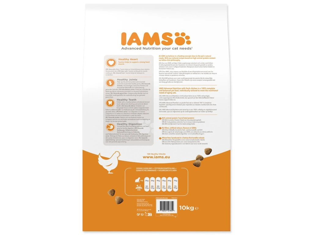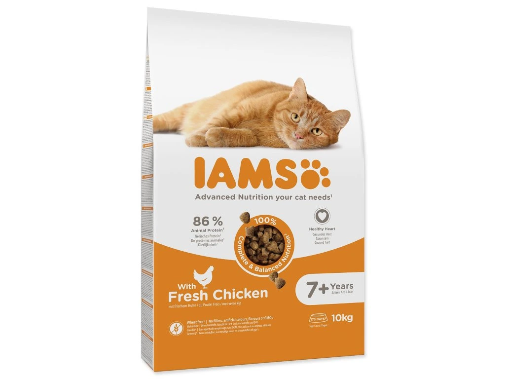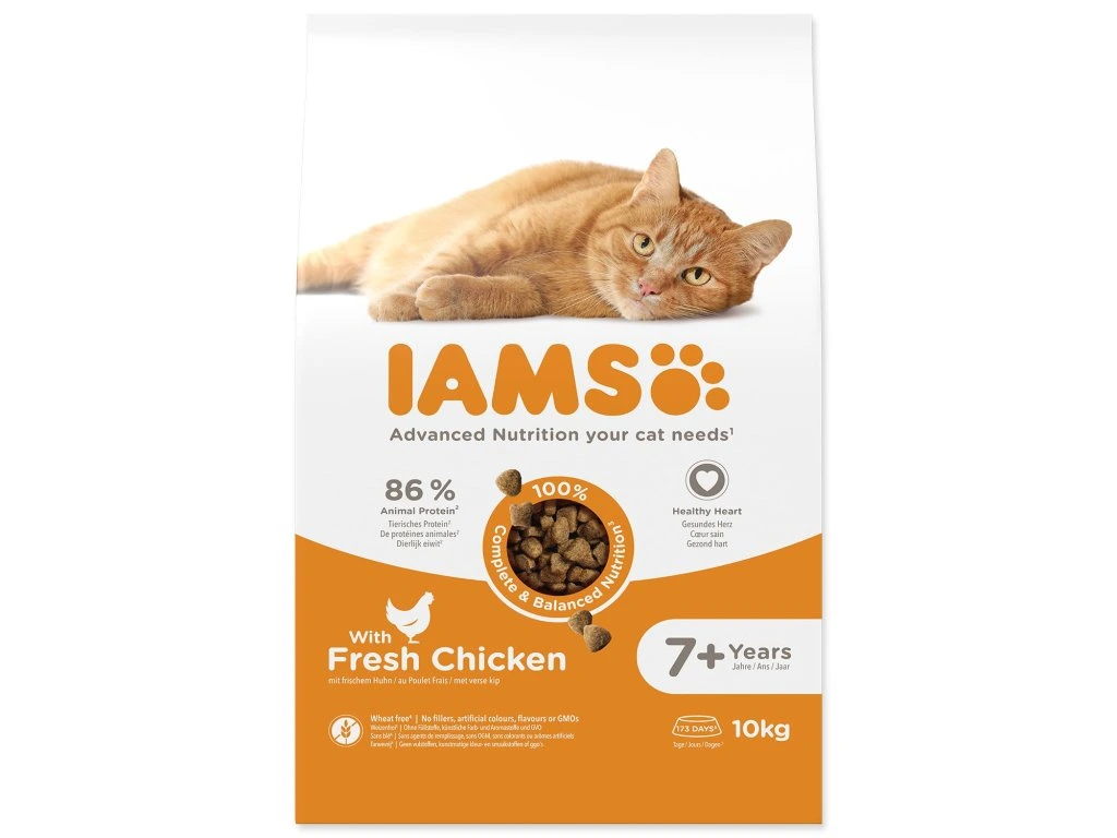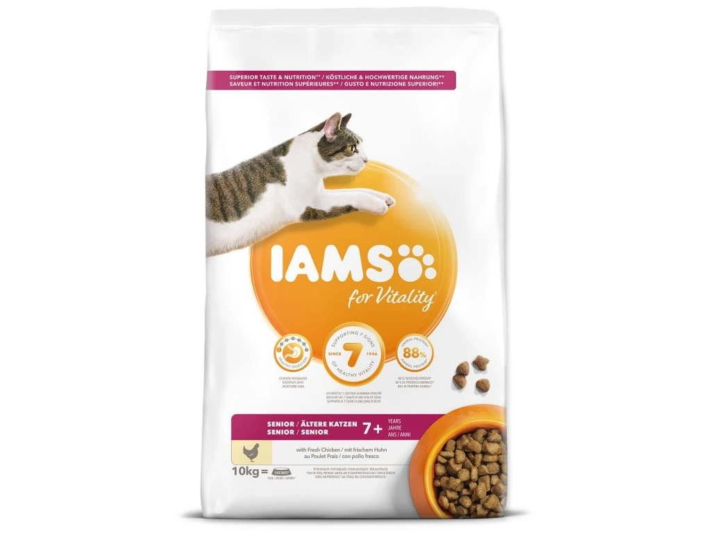 Krmivo IAMS for Vitality pro kočičí seniory je 100% kompletní a vyvážené, odborníky sestavené krmivo, které bude vašemu zvířeti chutnat a svědčit. Naše nová a vylepšená receptura pro kočičí seniory s čerstvým kuřecím masem je založena na kvalitních živočišných bílkovinách pečlivě vybraných tak, aby podporovaly sedm znaků zdravé vitality kočky. Aby byly kočky zdravé, aktivní a plné energie, obsahují naše lahodné receptury až 88 % kuřecího masa (z celkového obsahu bílkovin).