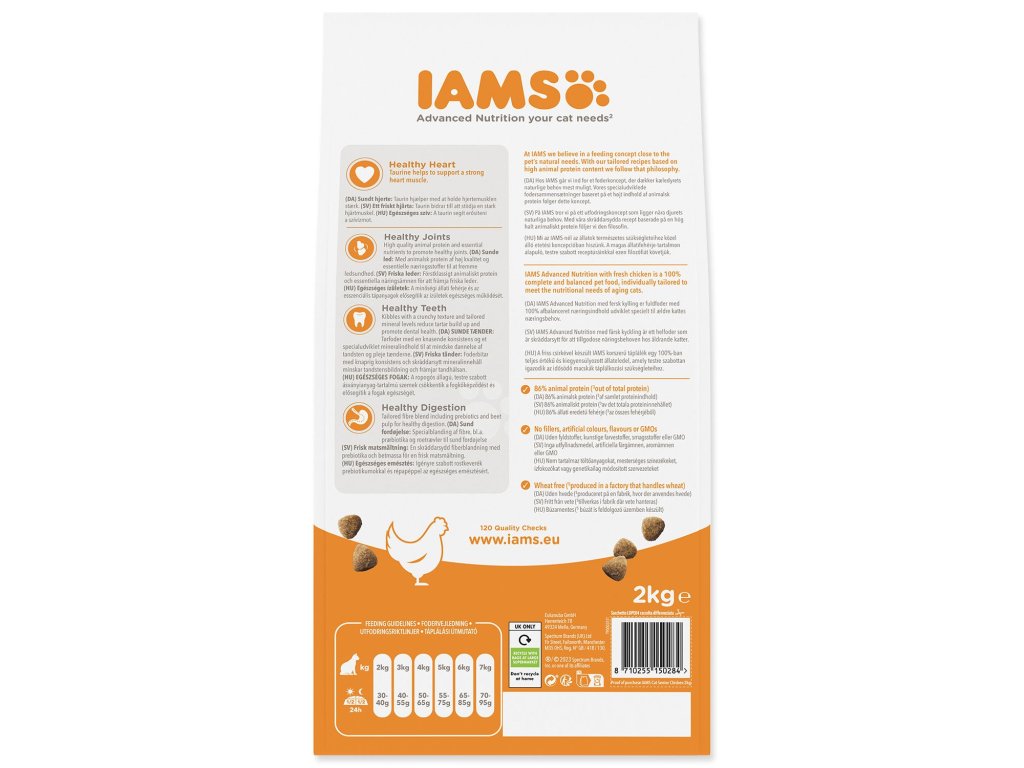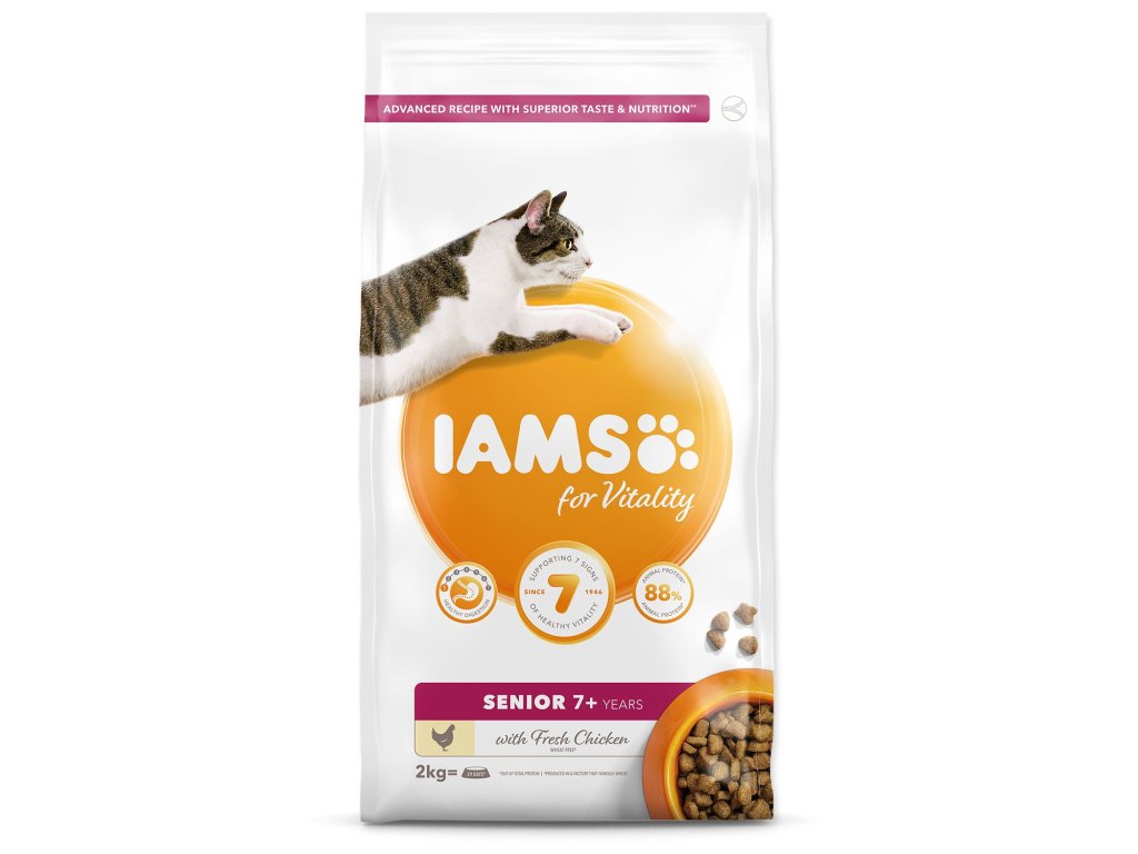 Krmivo IAMS for Vitality pro kočičí seniory je 100% kompletní a vyvážené, odborníky sestavené krmivo, které bude vašemu zvířeti chutnat a svědčit. Naše nová a vylepšená receptura pro kočičí seniory s čerstvým kuřecím masem je založena na kvalitních živočišných bílkovinách pečlivě vybraných tak, aby podporovaly sedm znaků zdravé vitality kočky. Aby byly kočky zdravé, aktivní a plné energie, obsahují naše lahodné receptury až 88 % kuřecího masa (z celkového obsahu bílkovin).