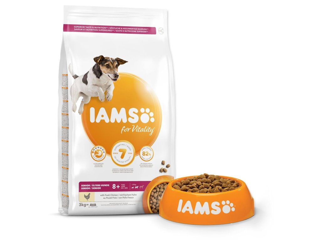 Krmivo IAMS for Vitality pro psí seniory malých a středních plemen je 100% kompletní a vyvážené, odborníky sestavené krmivo, které bude vašemu zvířeti chutnat a svědčit. Naše nová a vylepšená receptura pro psí seniory s čerstvým kuřecím masem je založena na pečlivě vybraných, kvalitních živočišných bílkovinách, které podporují sedm znaků zdravé vitality psa. Aby byl váš pes zdravý, aktivní a plný energie, obsahují naše lahodné receptury až 82 % živočišných bílkovin (z celkového obsahu bílkovin).