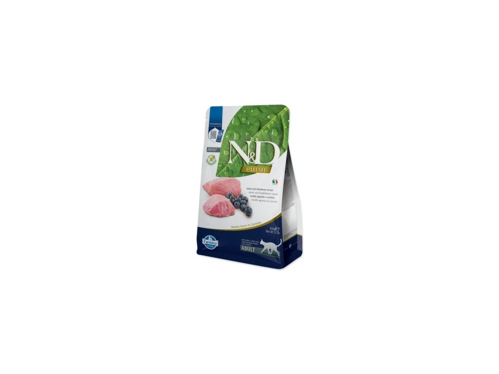 Kompletní krmivo N&D Cat Prime Lamb & Blueberry pro dospělé kočky.