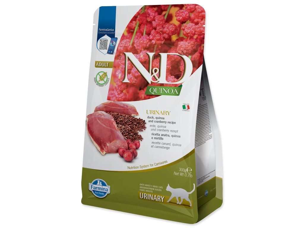 Kompletní krmivo N&D Cat Quinoa Urinary Duck pro kočky se sklonem k problémům močových cest.