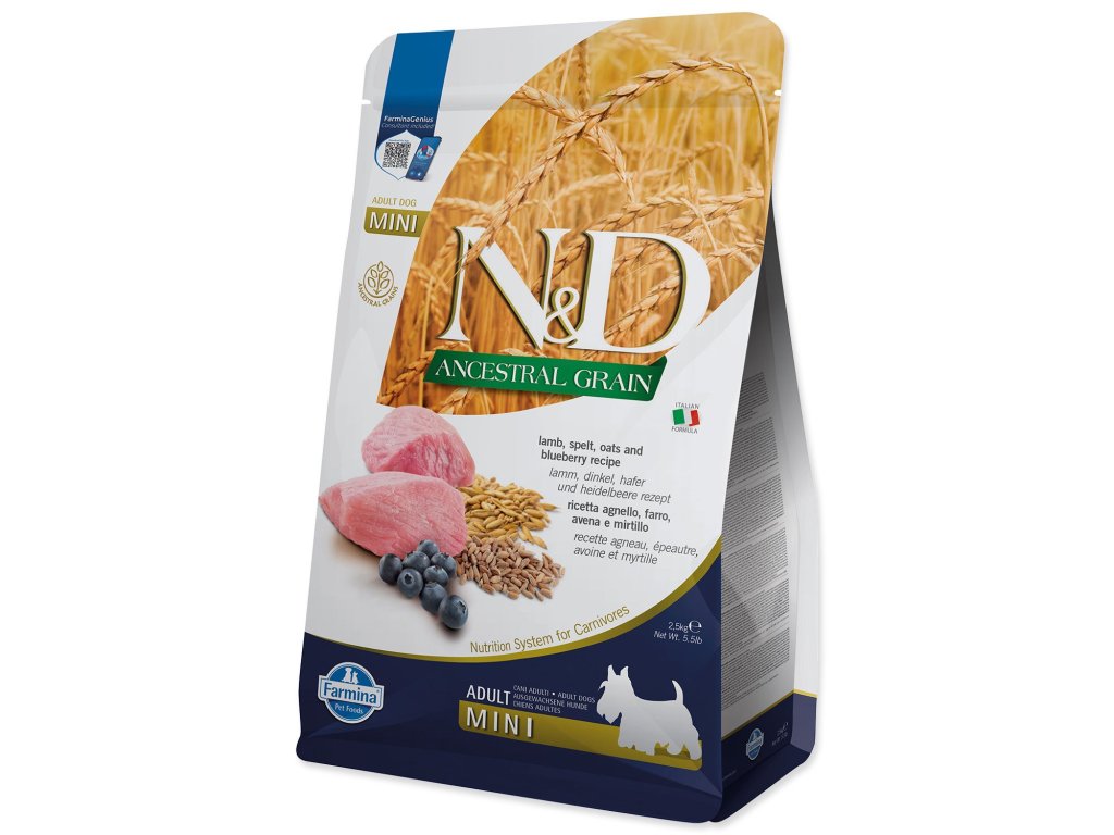 Krmivo N&D Dog Adult Mini Ancestral Grain Lamb, Spelt, Oats & Blueberry 2,5kg