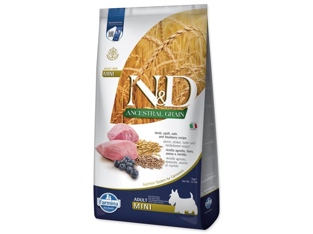 Krmivo N&D Dog Adult Mini Ancestral Grain Lamb, Spelt, Oats & Blueberry 7kg