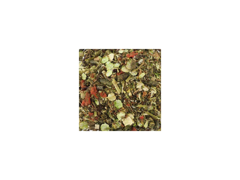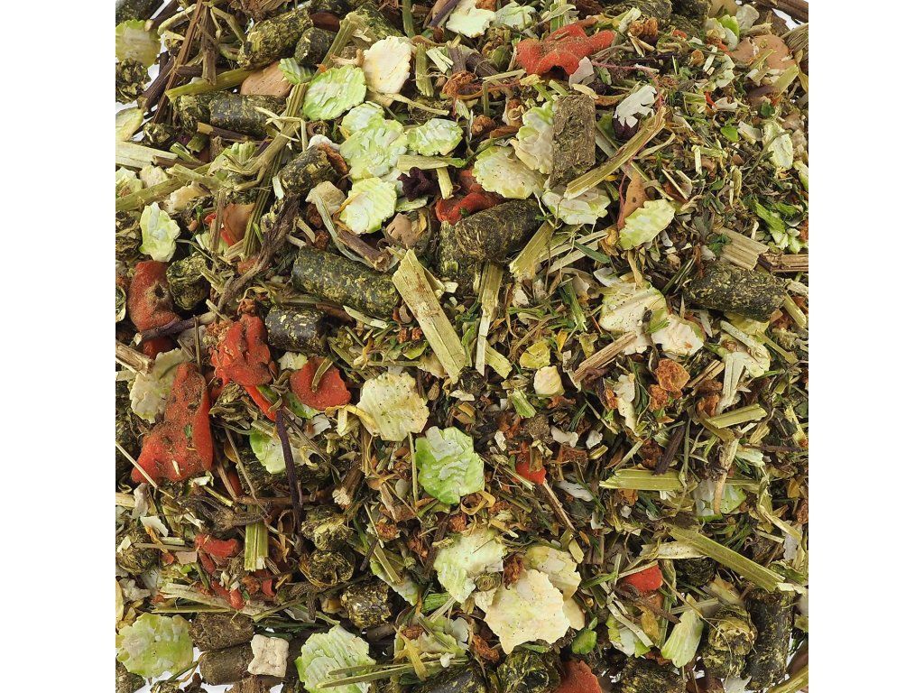 Složení: sušená vegetace rostoucí na trvalých pastvinách podhůří Alp, hrachové vločky 11,4 %, zelenina (sušená mrkev, sušená petržel 2,1 %, sušený pastinák, sušená červená řepa), byliny (sušené květy měsíčku lékařského 2 %, sušené kopřivy, sušená máta peprná 1,1 %, sušená meduňka, sušené pampelišky, sušený heřmánek), sušená jablka 4 %, vločky z bobu obecného 3,3 %, sušená vojtěška, lněná semena, semena černého kmínu, semena fenyklu.