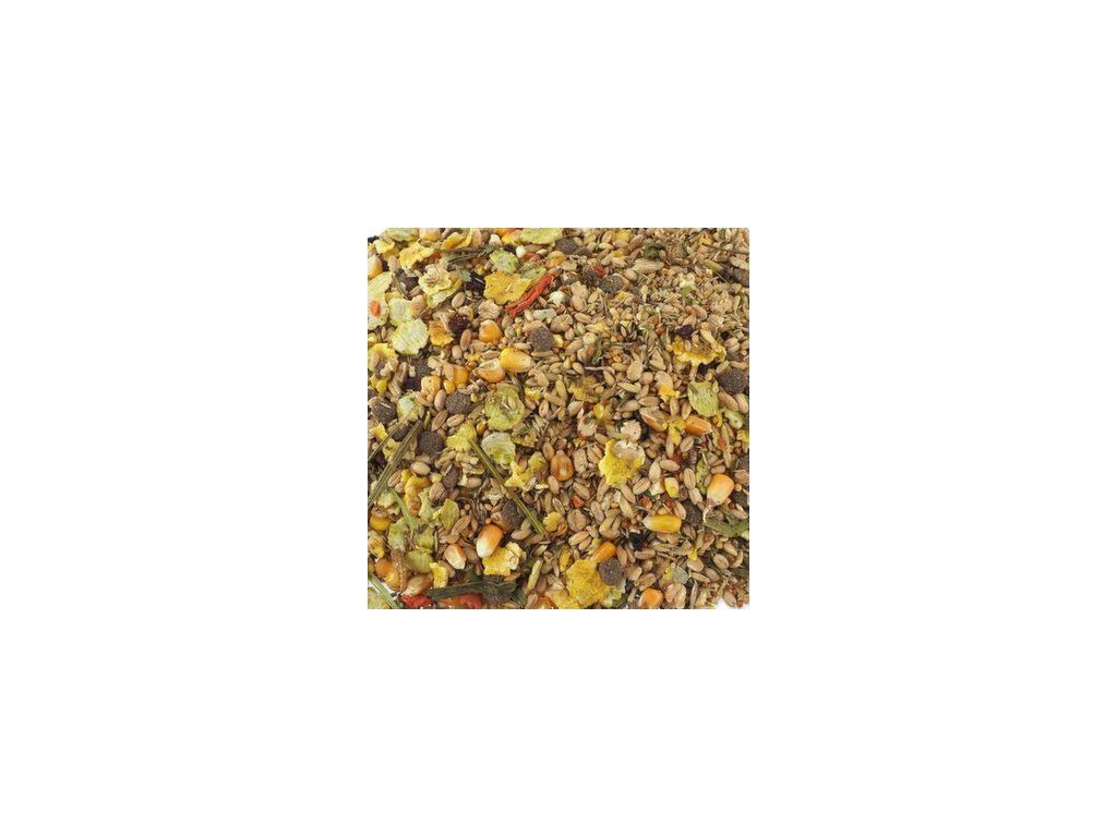 Složení: kukuřice 17 %, pšenice, kukuřičné vločky, pšeničné vločky, proso mana 8 %, hrachové vločky 8 %, oves, proso la plata, semena kanárských trav, semena travin, maso (sušené kuřecí, sušené hovězí 0,9 %, sušené ryby), extrudovaná kukuřičná mouka, zelenina (sušená mrkev, sušená červená řepa 1 %), lněné semeno, špalda, sušený jitrocel 2 %, rýže, sušení mouční červi 0,5 %.