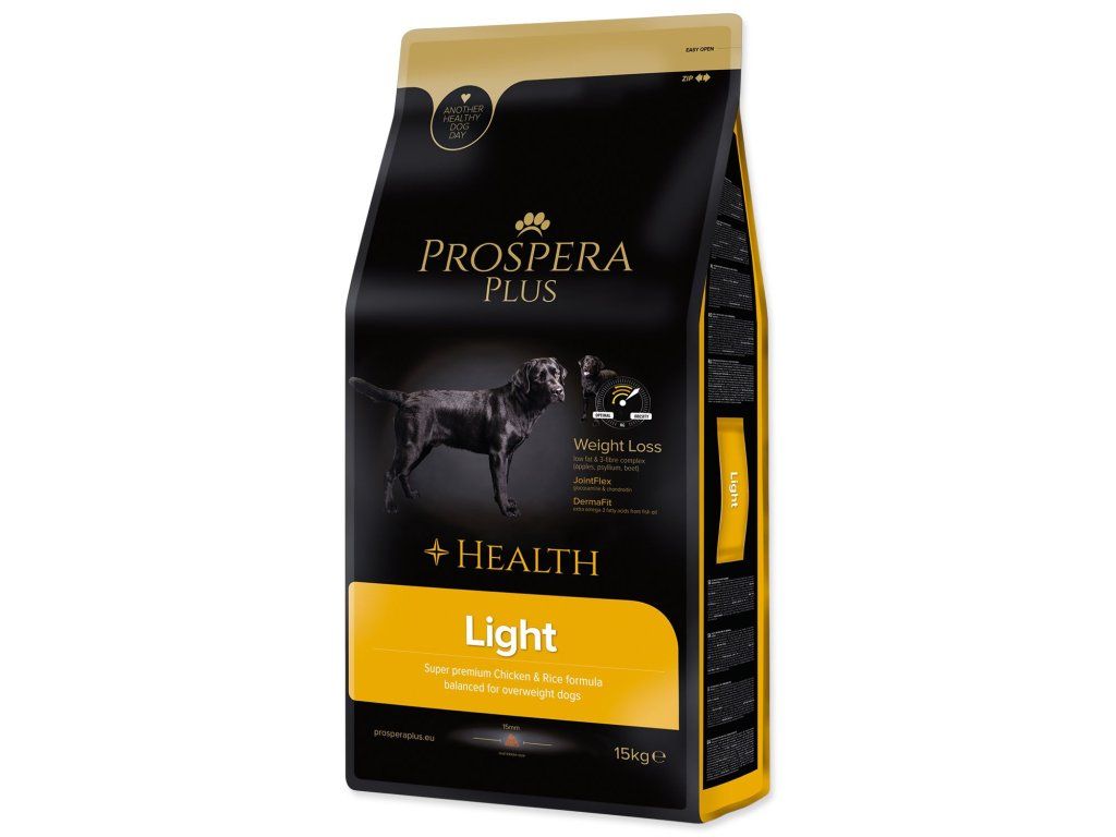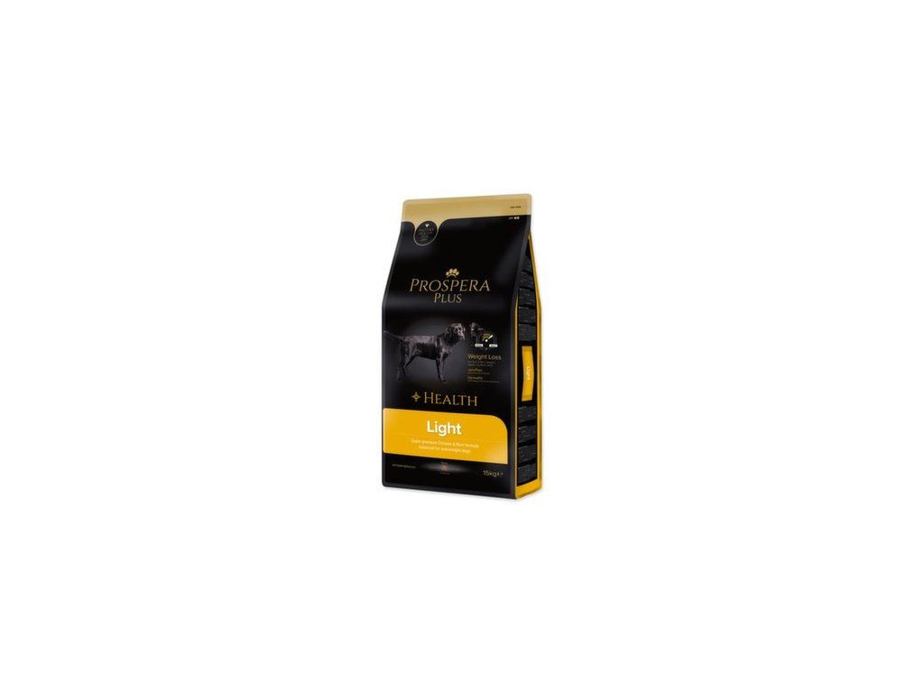 PROSPERA PLUS Light je superpremiové krmivo, s recepturou vhodnou pro dospělé psy trpící nadváhou nebo psy s menší aktivitou. Základem receptury je kvalitní lehce stravitelné kuřecí maso s nízkým obsahem tuku. Dalšími důležitými složkami krmiva je komplex 3 vláknin (jablečné, řepné a z jitrocele), které napomáhají správné regulaci váhy psů. Krmivo je obohaceno o rybí tuk (omega 3 mastné kyseliny), který zlepšuje zdravou srst a kůži. Chondroprotektiva glukosamin a chondroitin pomáhají posilovat a stabilizovat kosti a klouby.