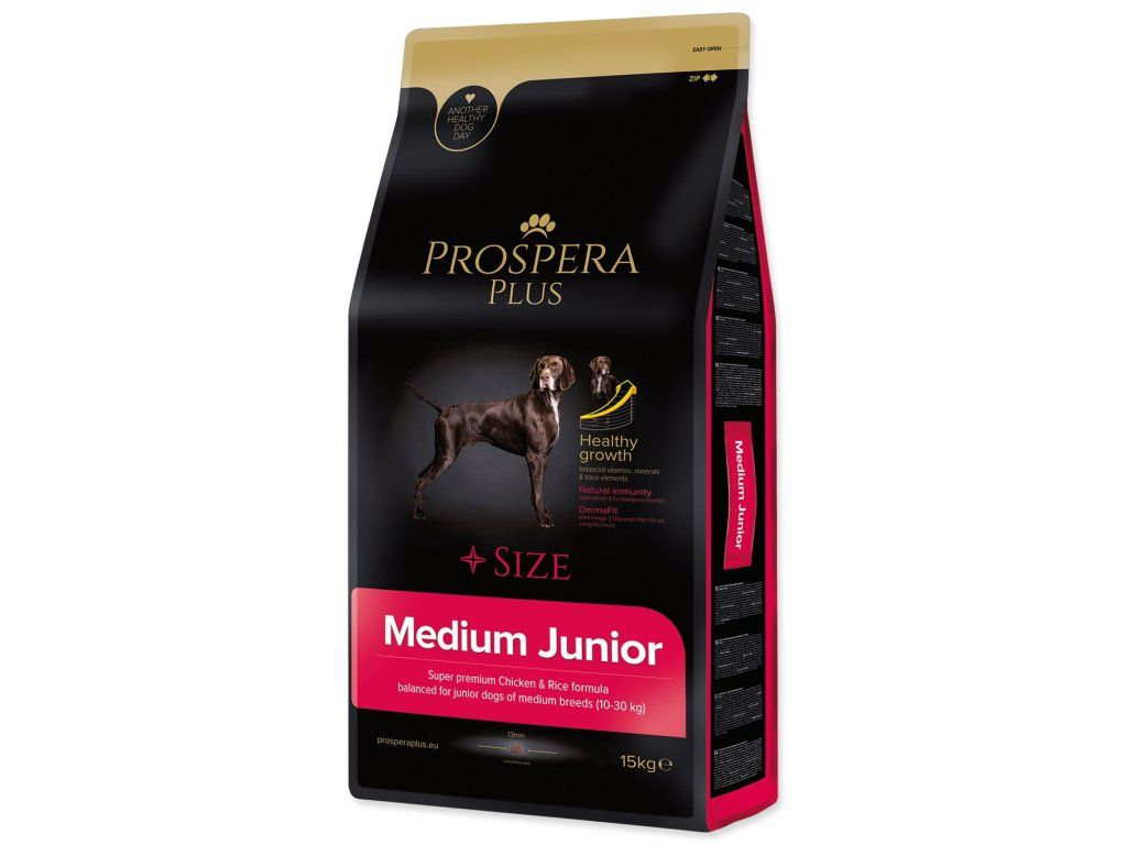 Máte štěně středního plemene, které bude mít v dospělosti 10-30 kg? PROSPERA PLUS Medium Junior je superpremiové krmivo určené právě pro štěňata a mladé psy středních plemen. Vyvážené minerály společně s vitamíny zaručují správný a zdravý růst všech štěňat středních plemen. Funkční ingredience obsažené v receptuře (rybí tuk, fruktooligosacharidy) posilují imunitu a podporují zdravou srst a kůži vašich pejsků.
