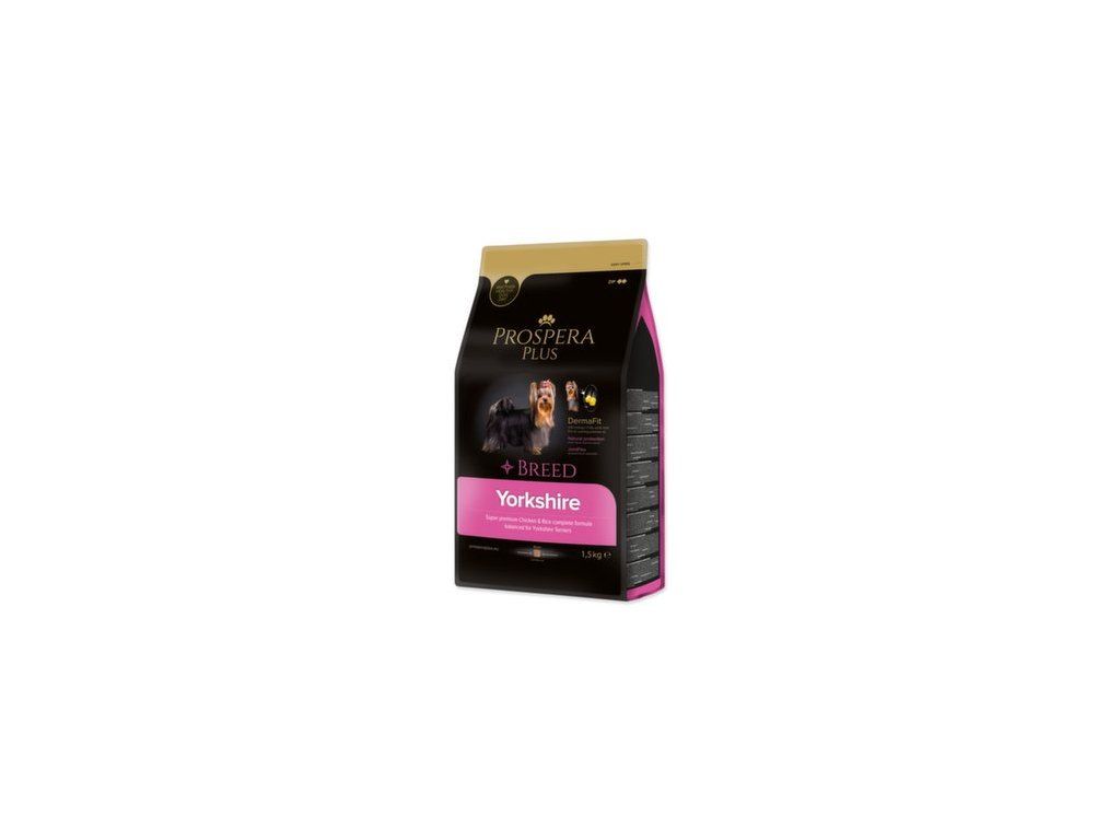 PROSPERA PLUS Yorkshire je superpremiové krmivo, navržené s ohledem na unikátní výživové potřeby plemene Yorkshirský teriér. Základem receptury je kvalitní lehce stravitelné kuřecí maso doplněné o rybí tuk (omega 3 mastné kyseliny) a pupalkový olej, které podporují zdravou srst tohoto plemene. Funkční přísady extrakt ze zeleného čaje a rozmarýnu posilují imunitu pejsků. Chondroprotektiva glukosamin a chondroitin pomáhají posilovat a stabilizovat kosti a klouby.Speciální tvar granulí pomáhá k prevenci před zubním kamenem a plakem.
