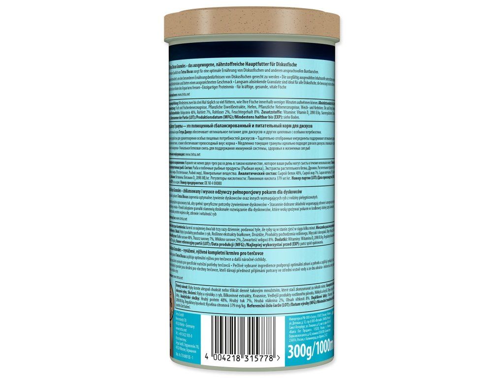 Plnohodnotné krmivo ve formě granulátu, speciálně upravené pro potřeby druhu Symphysodon.