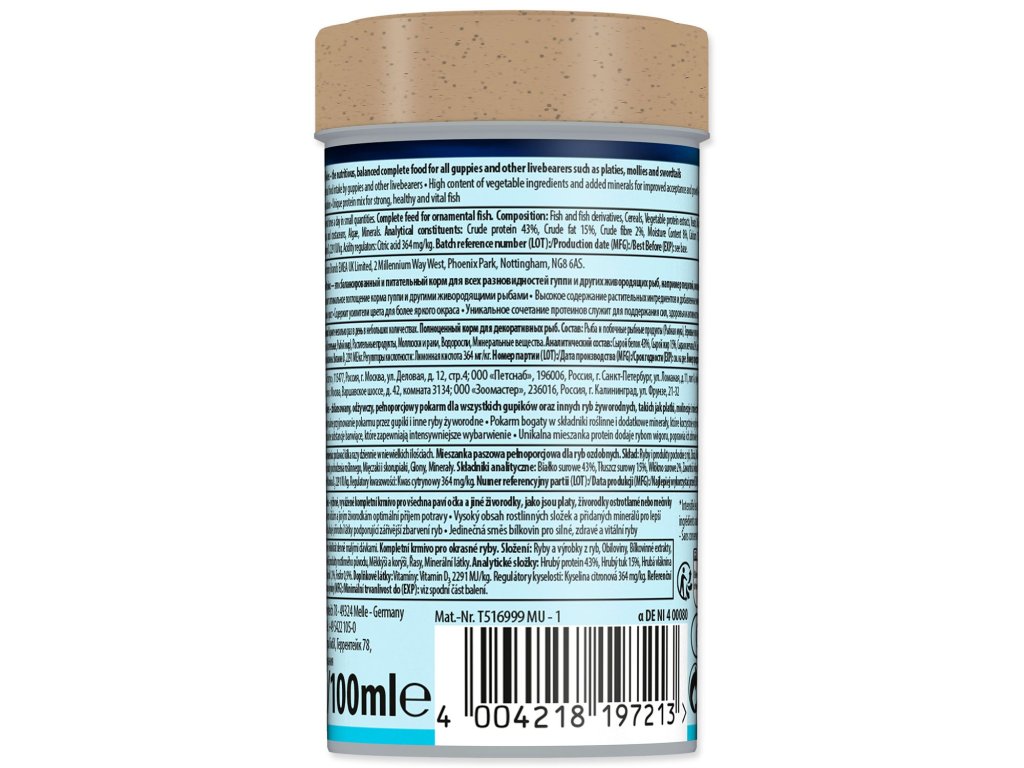 Kompletní krmivo pro paví očka, halančíky a ostatní živorodky.