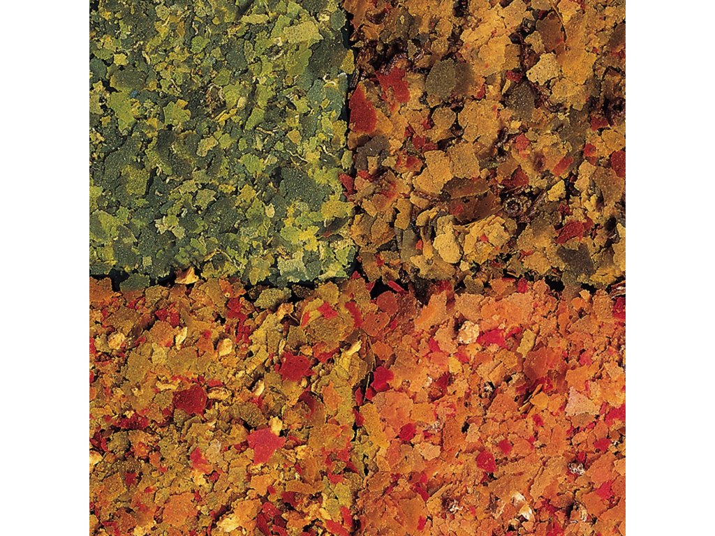 Čtyři druhy vločkových krmiv ve čtyřech nádobkách: žluté vločky podporují zdravý růst rybek, hnědé zvyšují odolnost, zelené přejí vitalitě, červené zlepšují plodnost. Obsahuje stabilní množství vitamínu C.