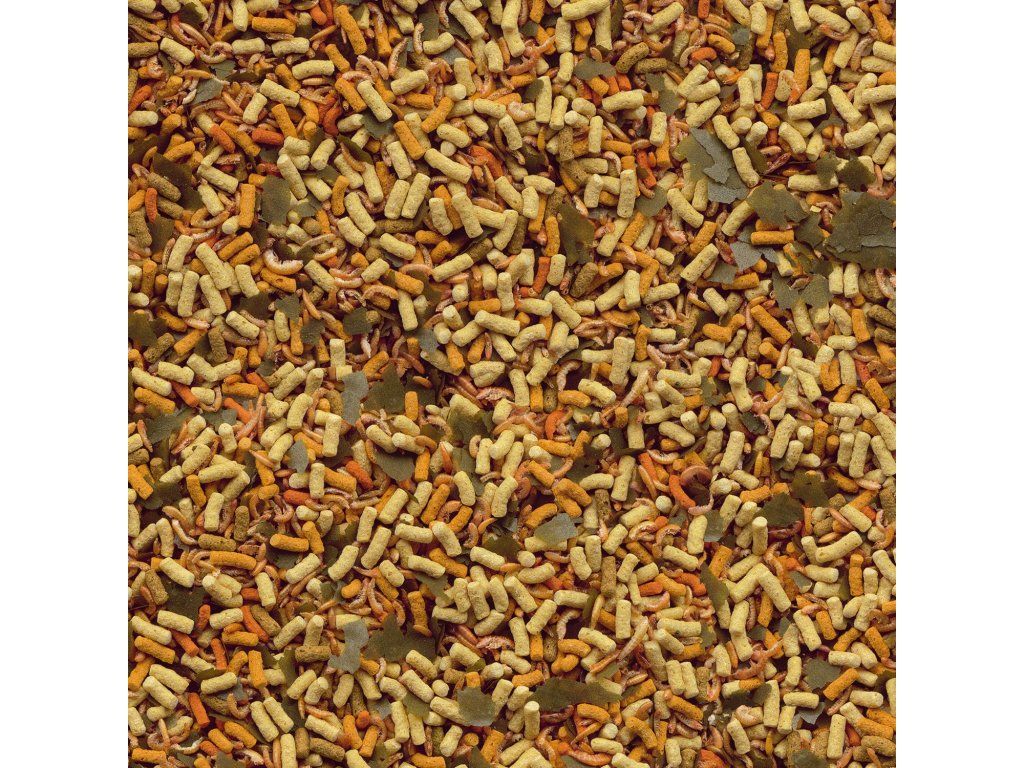 Kompletní krmivo pro zlaté ryby. Obsahuje vločky s řasami Spirulina k zintenzivnění barev, vysoce jakostní proteiny ke zdravému růstu, lehce stravitelné uhlohydráty pro více energie, gamarus pro pestrou výživu, stabilní vitamín C a formuli BioActive pro zvýšenou odolnost.