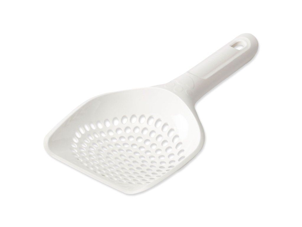Plastová lopatka k odstraňování kočkolitu.