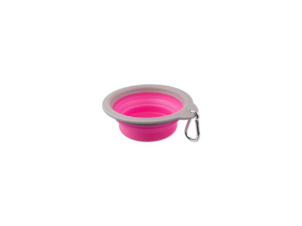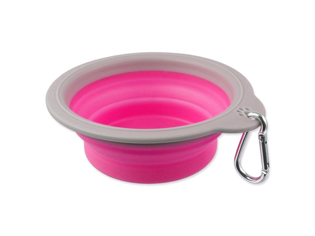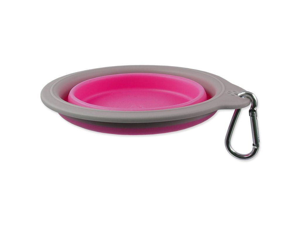 Cestovní miska skládací. Vyrobena z odolného materiálu silikonu, snadno složitelná do kompaktních rozměrů. Vhodná na cesty a dlouhé procházky. Nepřijímá pachy a snadno se udržuje. Odolná proti nárazům a mrazu. Obsahuje karabinu pro uchycení na batoh nebo oblečení.
