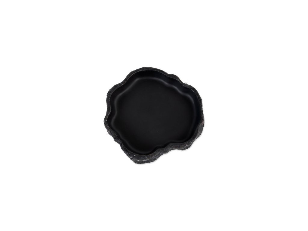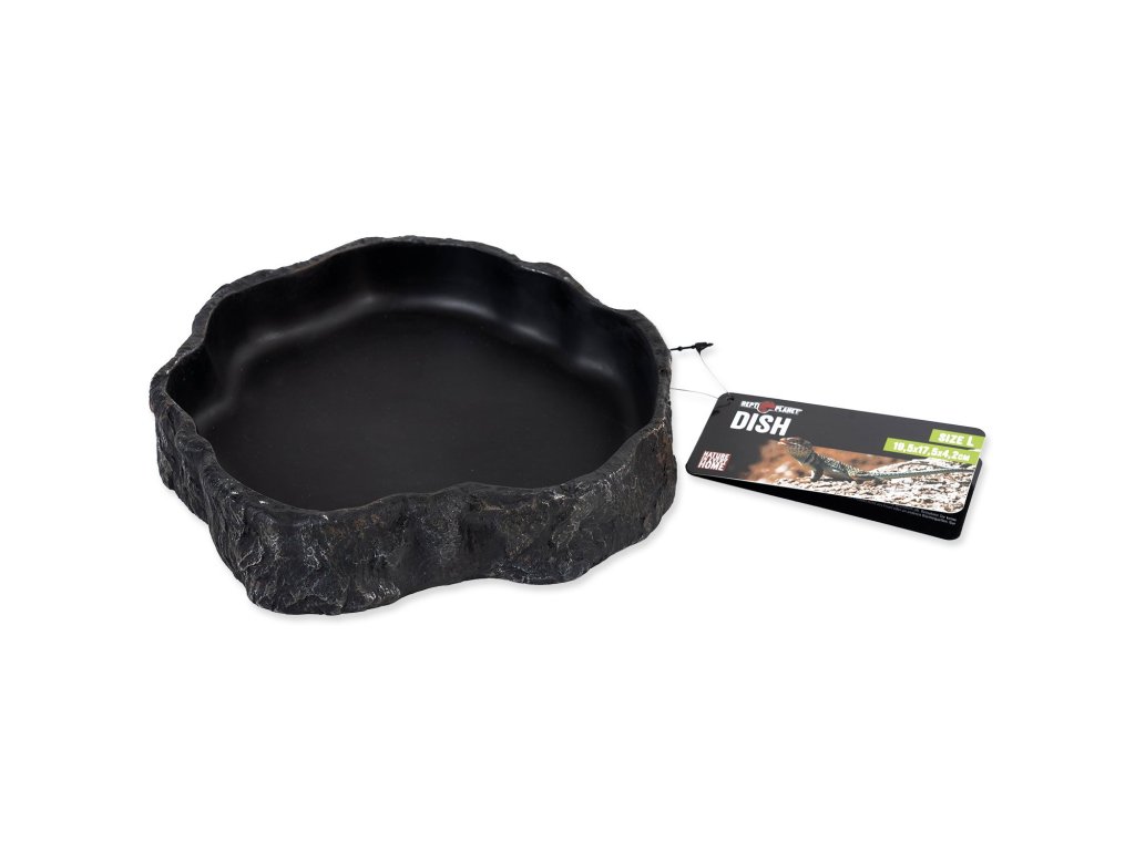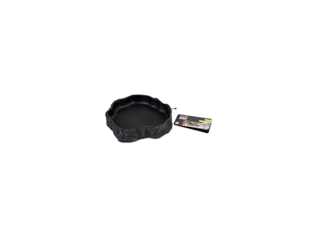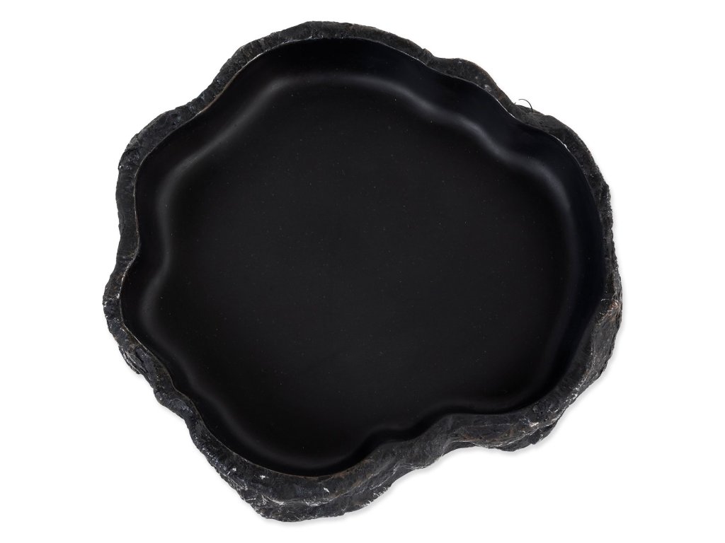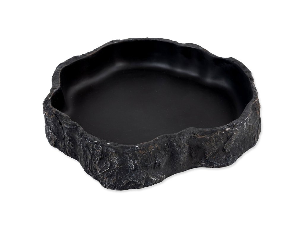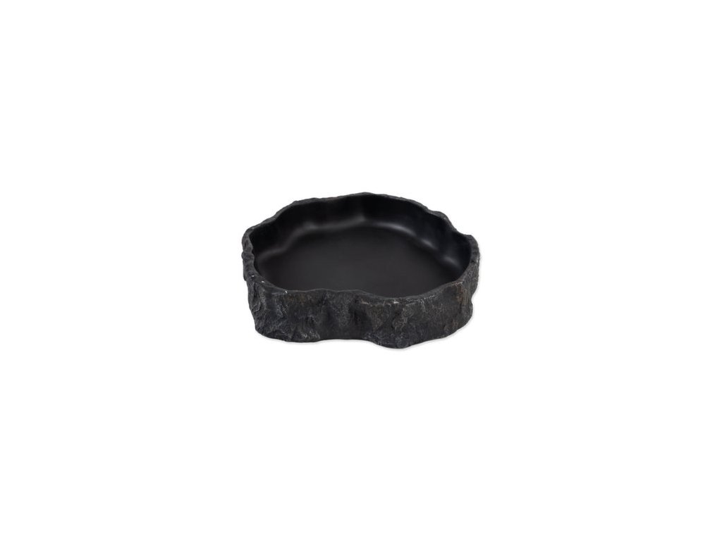 Miska na vodu či krmivo pro plazy, obojživelníky a další druhy zvířat, v černém designu.