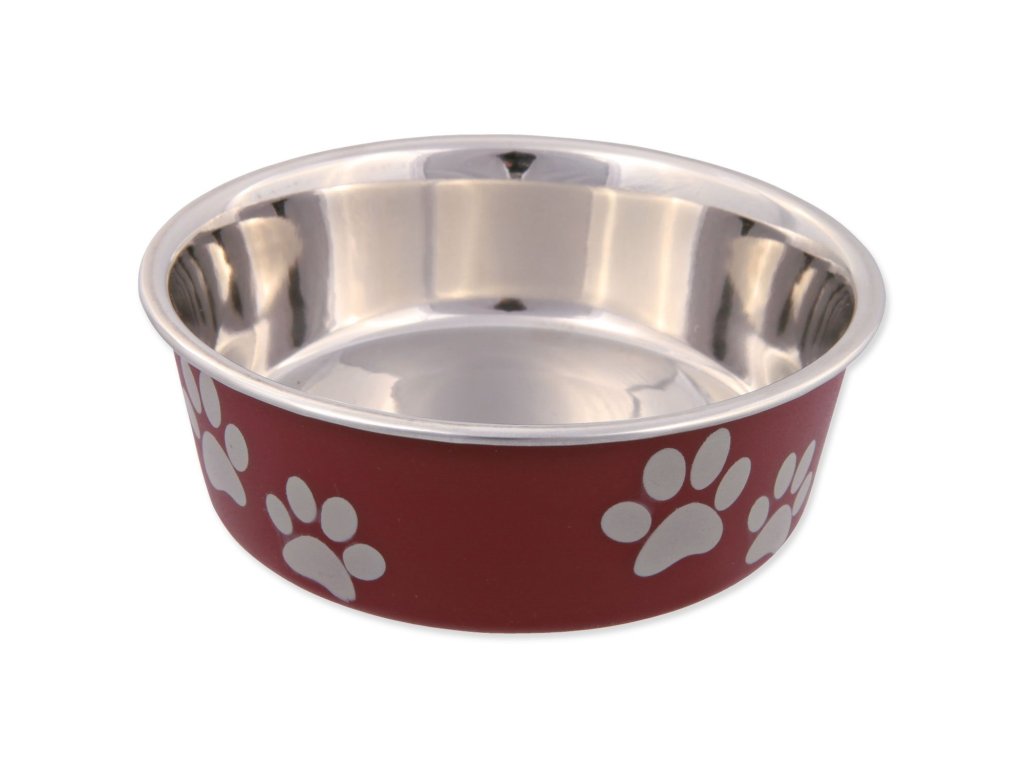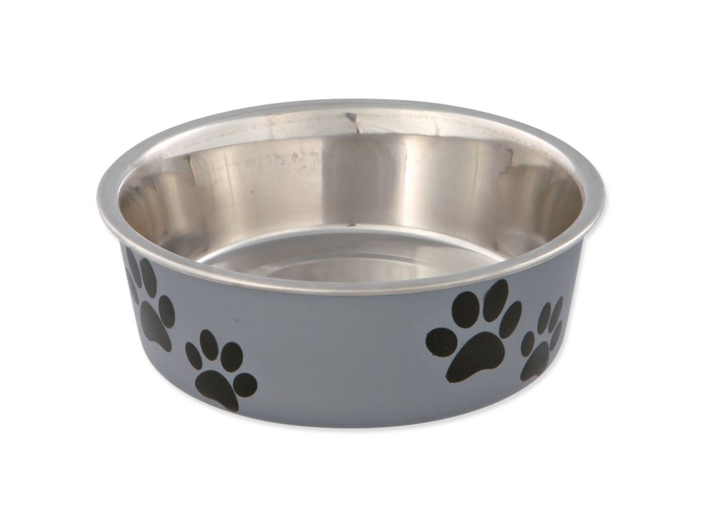 Miska nerezová s plastovým povrchem a protiskluzovým kroužkem, který zabrání posouvání misky po podlaze.