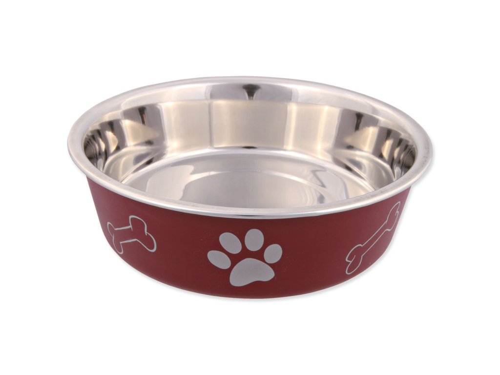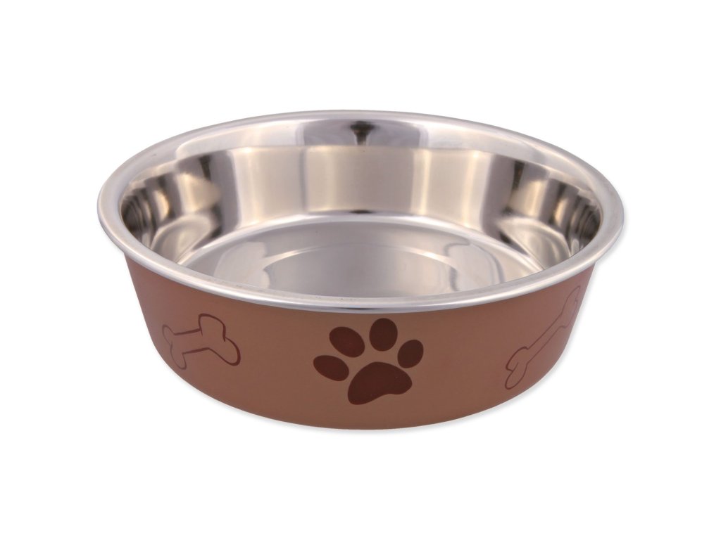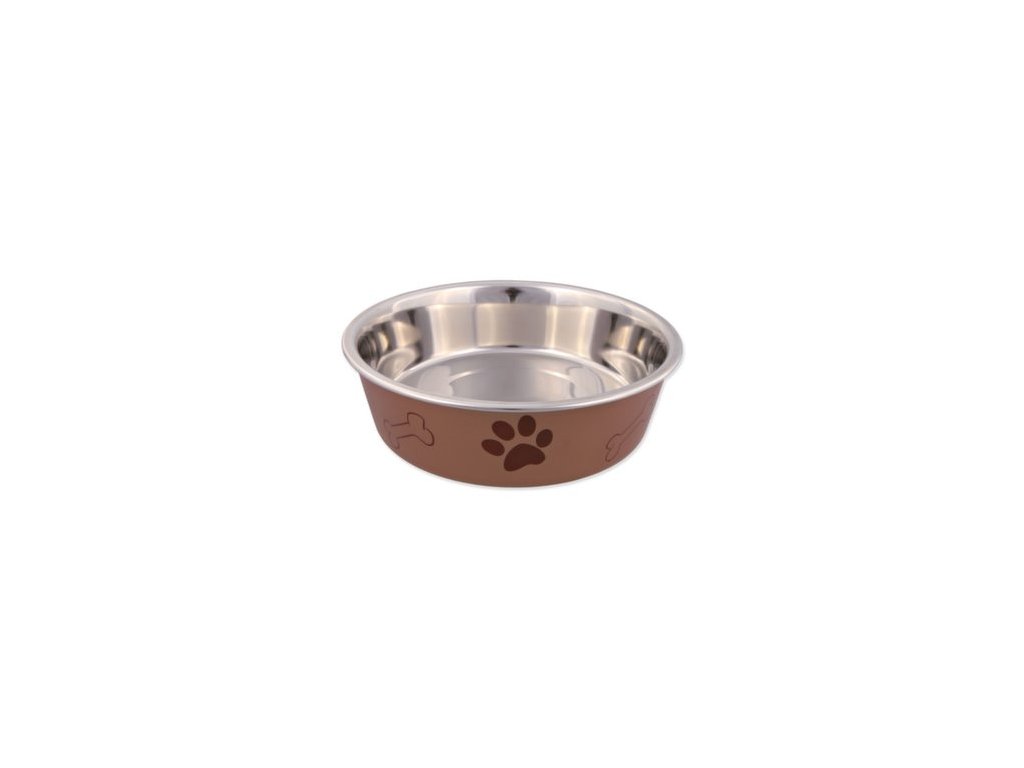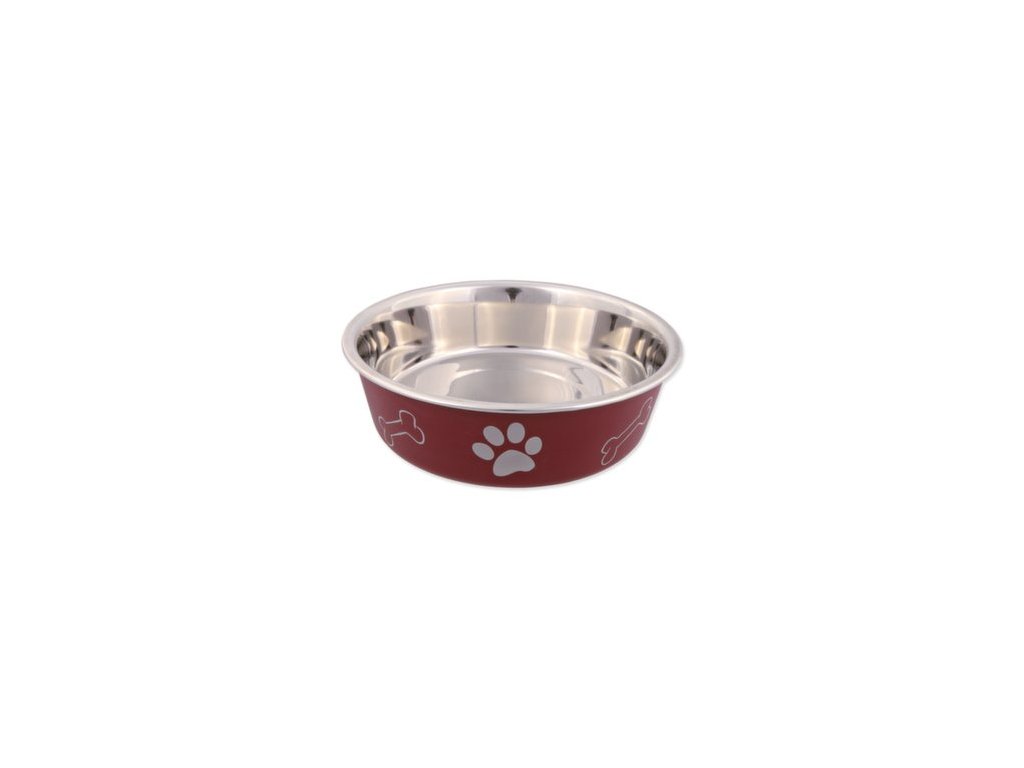 Miska nerezová pro psy s plastovým povrchem. S protiskluzovým kroužkem, který zabrání posouvání misky po podlaze.