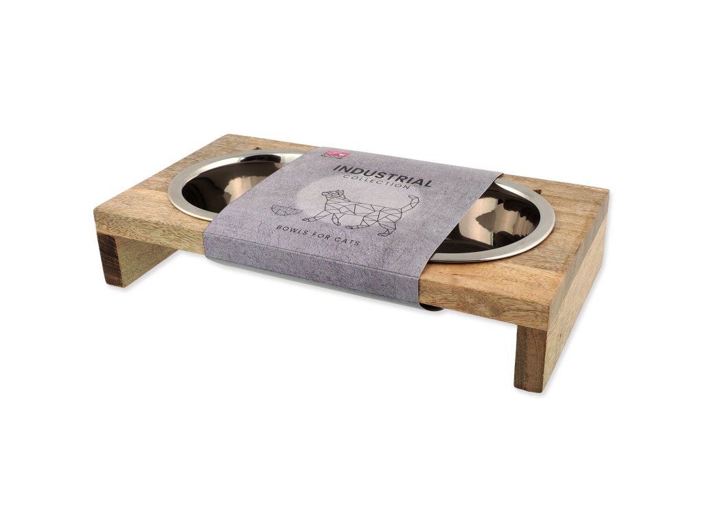 Misky Magic Cat nerez s dřevěným stojánkem 2x400ml