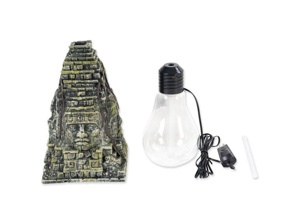 - Atraktivní design pyramidy starověkých civilizací, hodící se do tropických terárií.