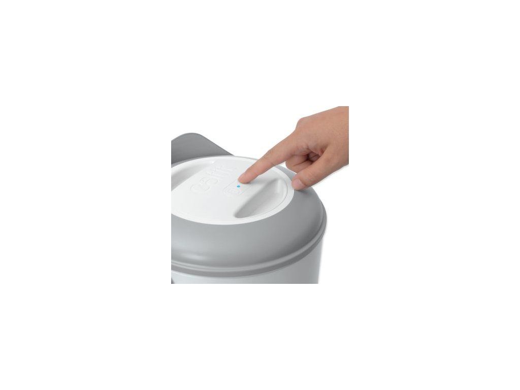 Tato nádoba je přenosné zařízení s vestavěnou baterií, které vyžaduje nabíjení pouze každé 2 až 3 týdny, v závislosti na frekvenci používání. Přiložený USB-C kabel je kompatibilní s jakýmkoli USB-A adaptérem 5V, min. 1 A. Když je baterie vybitá, kontrolka LED na horní straně nádoby se rozsvítí červeně, aby vás upozornila.