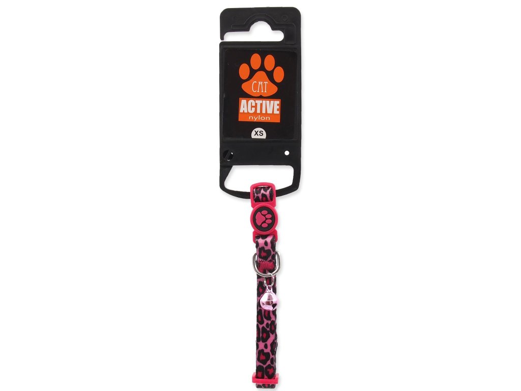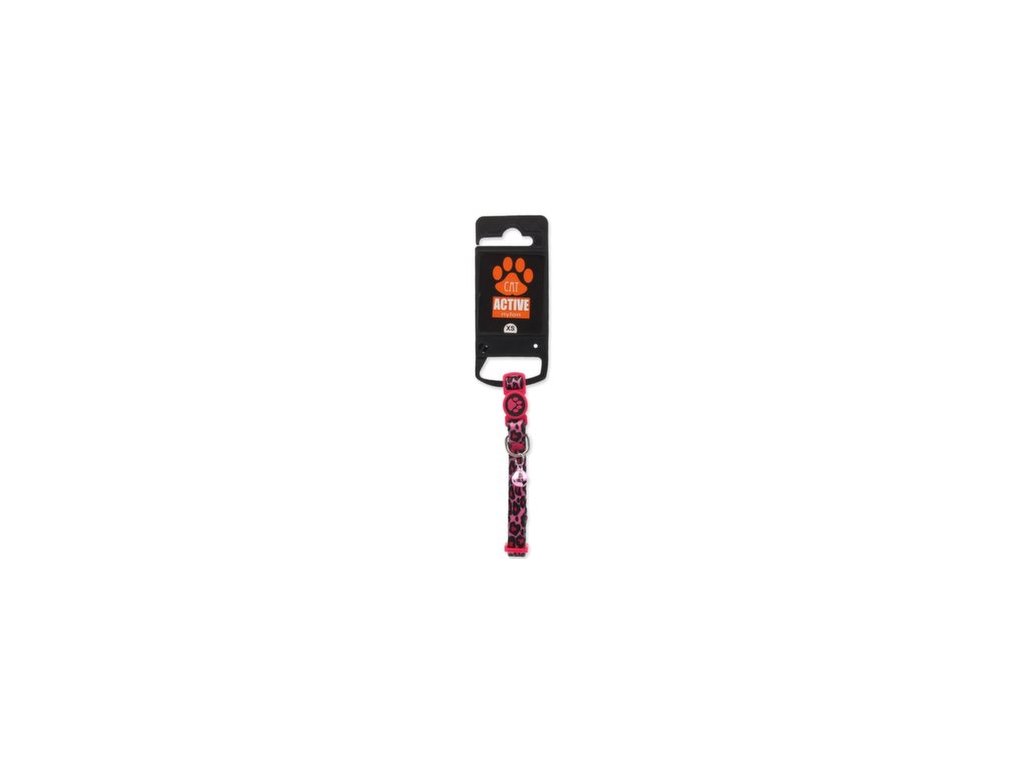 Obojek Active Cat nylon XS leopard růžový 1x19-31cm