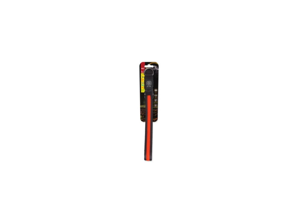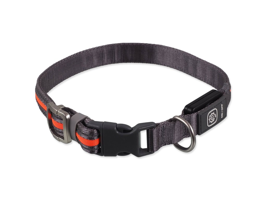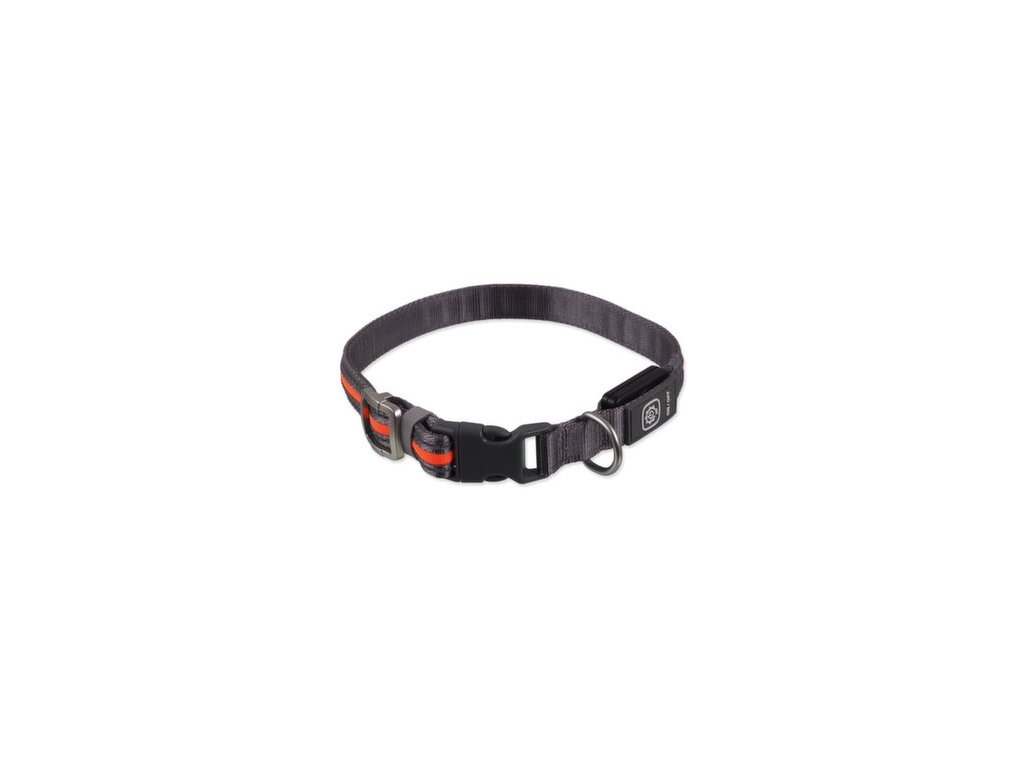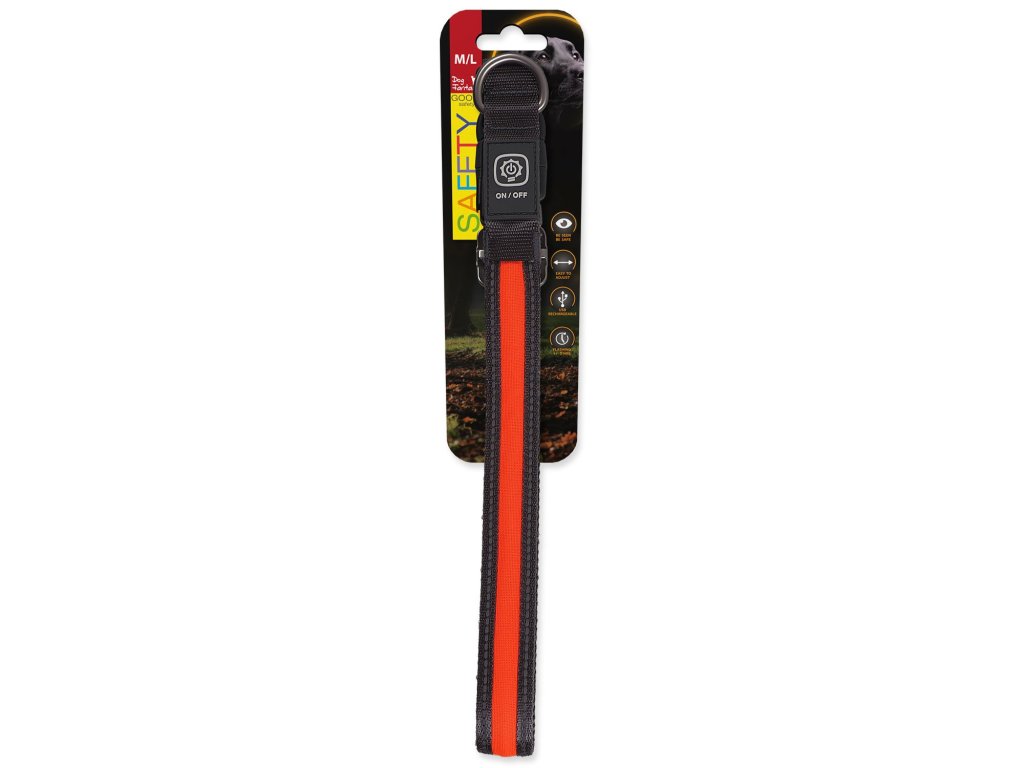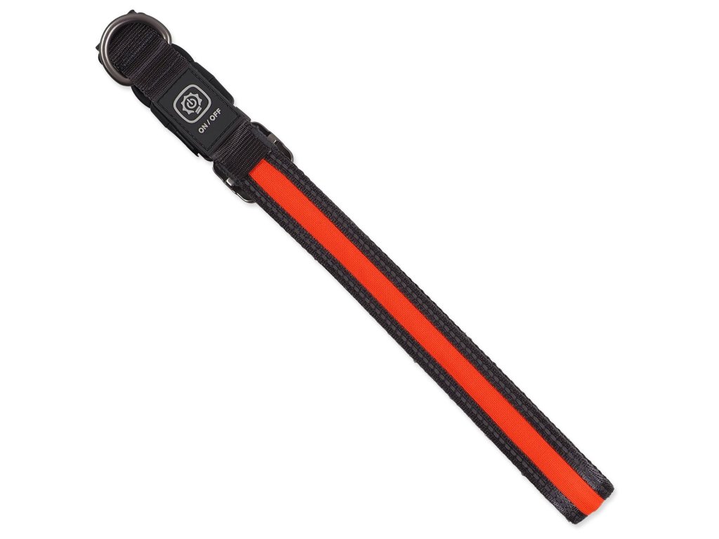 Obojek Dog Fantasy USB LED nylonový svítící M-L oranžový 2,5x45-65cm