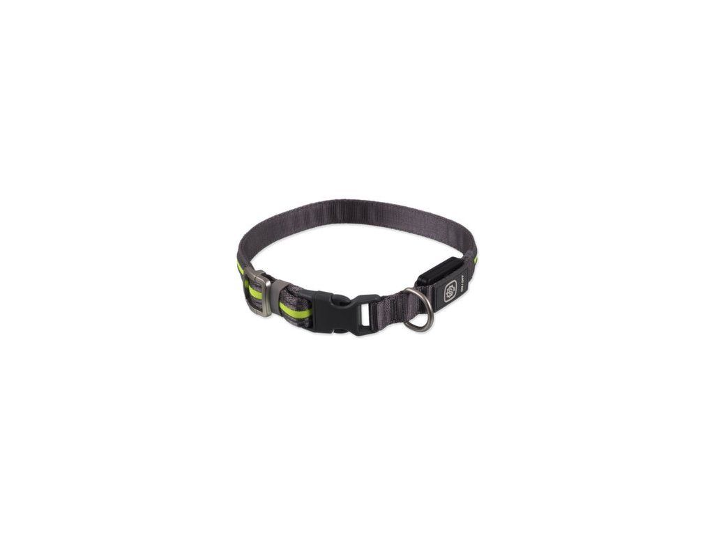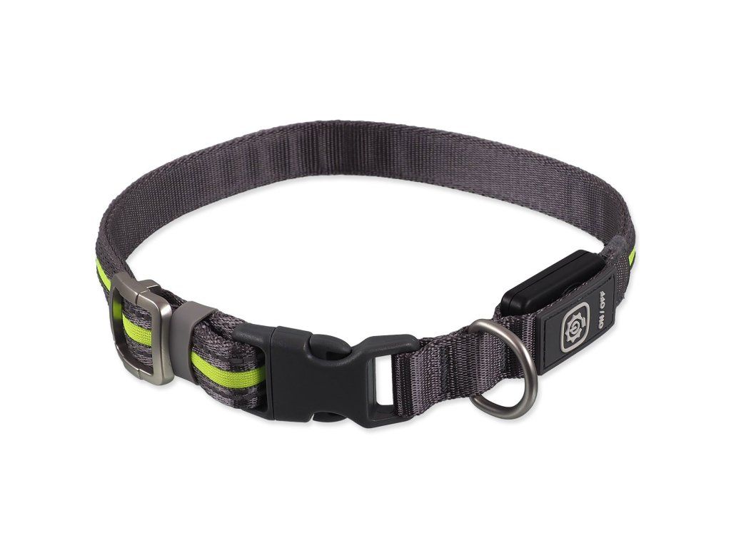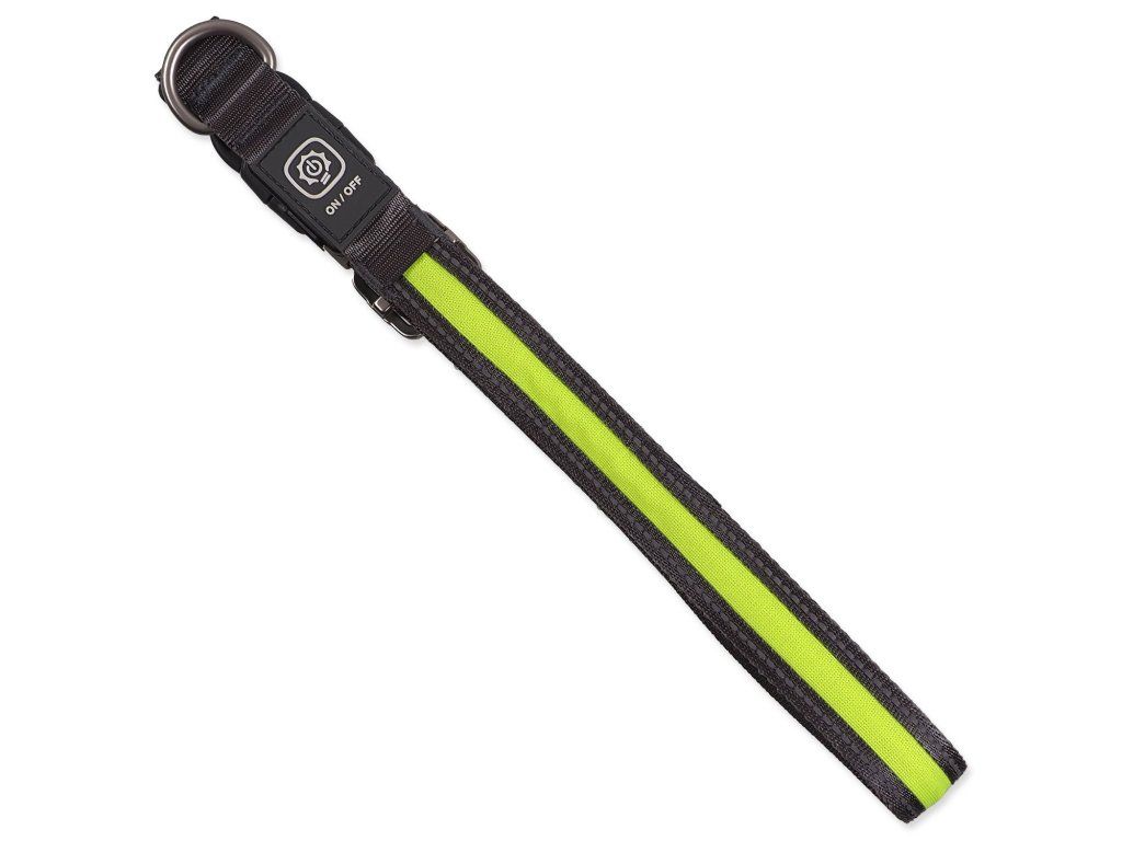 Obojek Dog Fantasy USB LED nylonový svítící M-L zelený 2,5x45-65cm