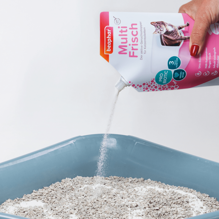 Pro dosažení nejlepších výsledků jej průběžně přisypávejte, aby se rovnoměrně promíchal s celým obsahem toalety a udržoval ji svěží po delší dobu. U domácností s jednou kočkou stačí jedna aplikace k udržení čerstvého steliva bez zápachu po dobu jednoho týdne. U domácností s více kočkami se doporučuje deodorant znovu aplikovat několikrát týdně nebo toaletu úplně vyčistit a doplnit nové stelivo.
