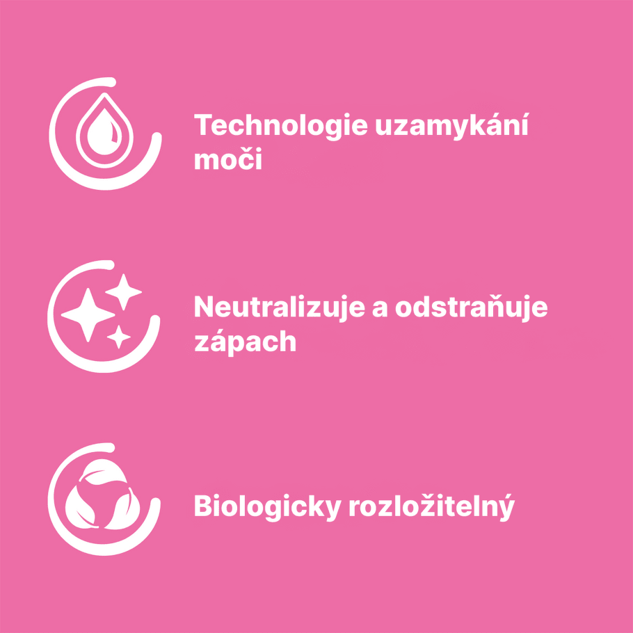 Speciální granule okamžitě uzavírají moč uvnitř a brání šíření pachu. -
