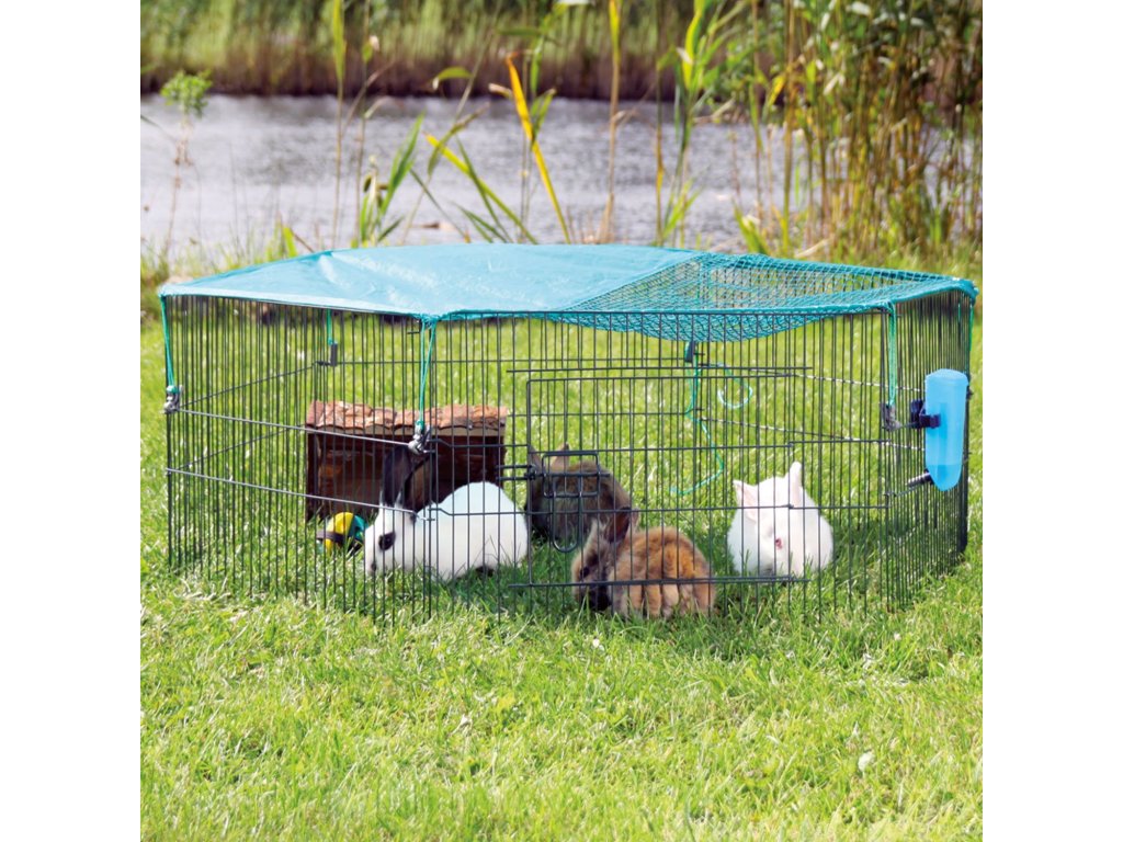 Venkovní ohrádka pro králíky a morčata s ochrannou síťkou a ukotvením do země. Vhodné pro mláďata.