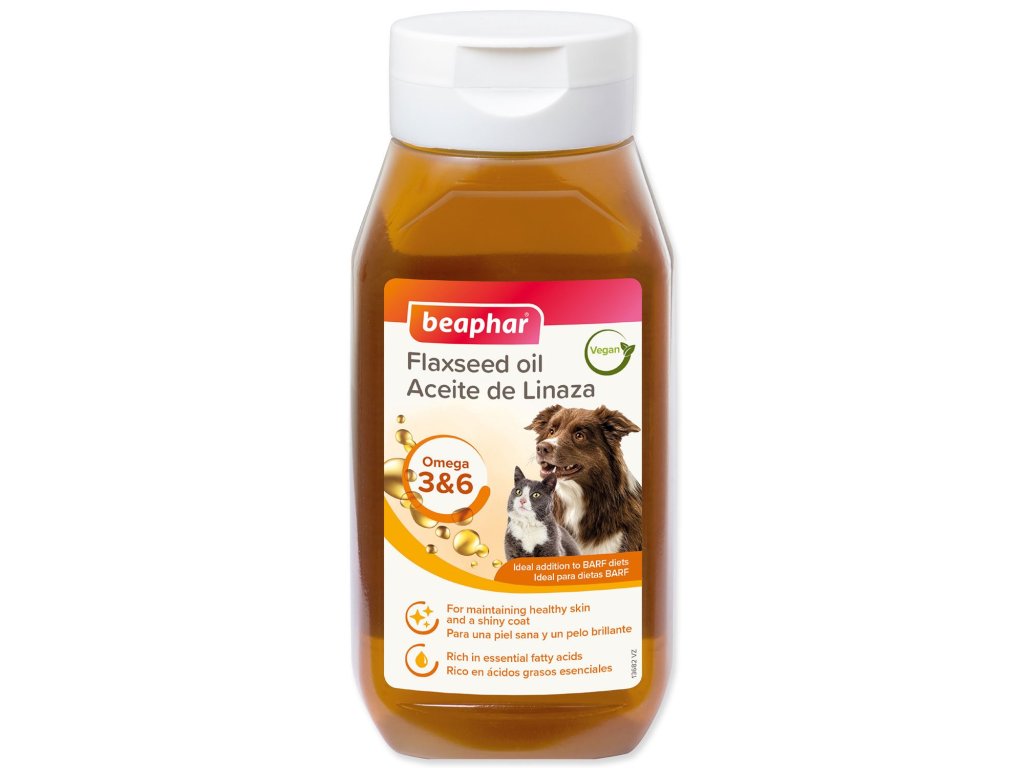 - Mimo jiné lněný olej podporuje srdce a cévy, pohyblivost kloubů a přispívá k pružné lesklé srsti a zdravé kůži.