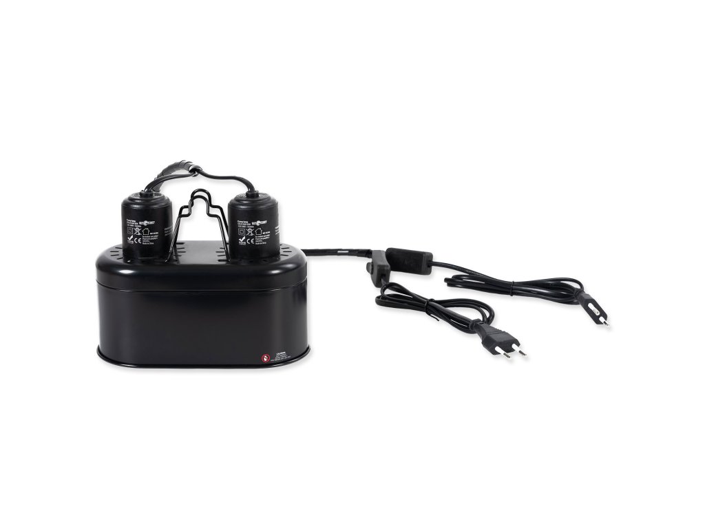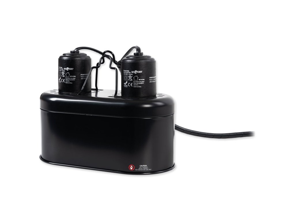 Dvojitá lampa do terária s keramickými objímkami a spojeným reflektorem.