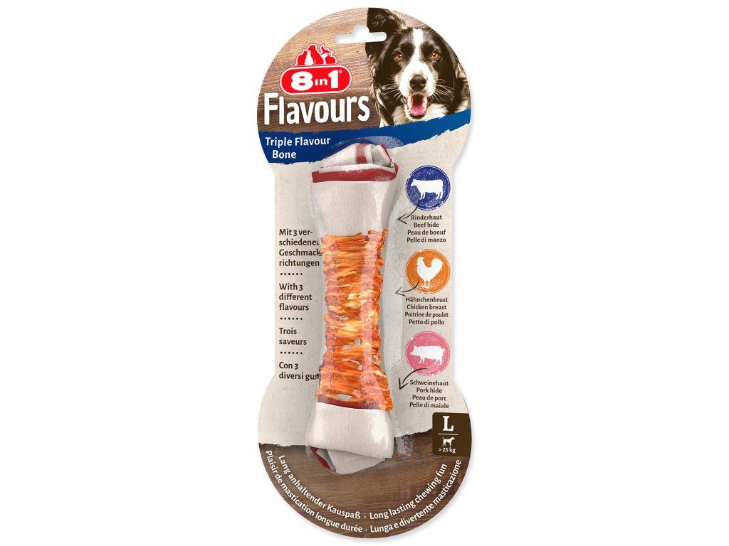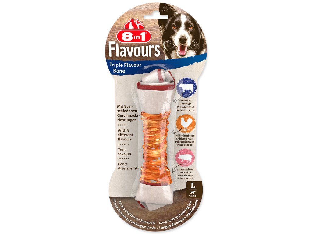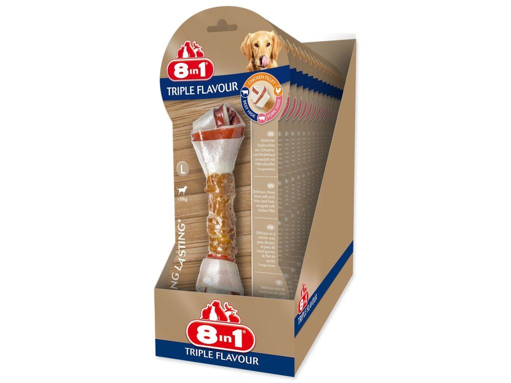 Pochoutka 8in1 Triple Flavour kost žvýkací L