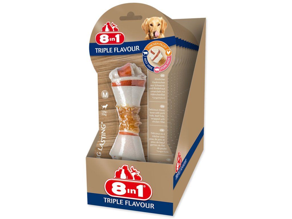 Pochoutka 8in1 Triple Flavour kost žvýkací M